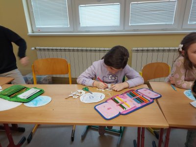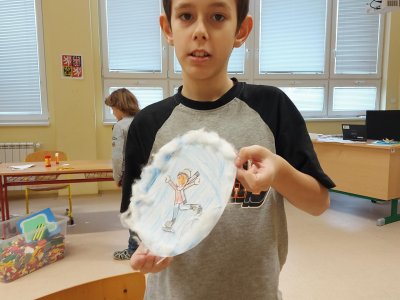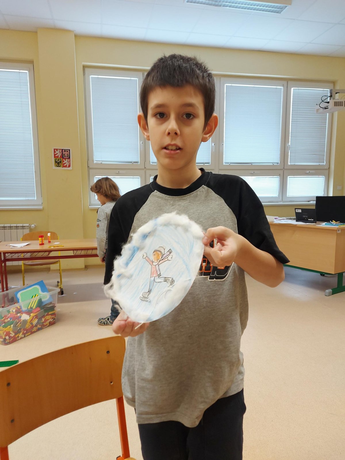 Děti ve školní družině vytvářely postavičku, která bruslí na zamrzlém rybníčku. Při tvoření rozvíjely svou fantazii, zručnost a radost ze zimních aktivit. Hotové práce připomínají kouzlo zimního období.