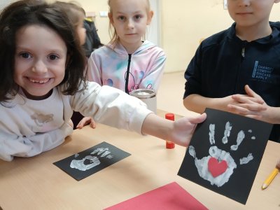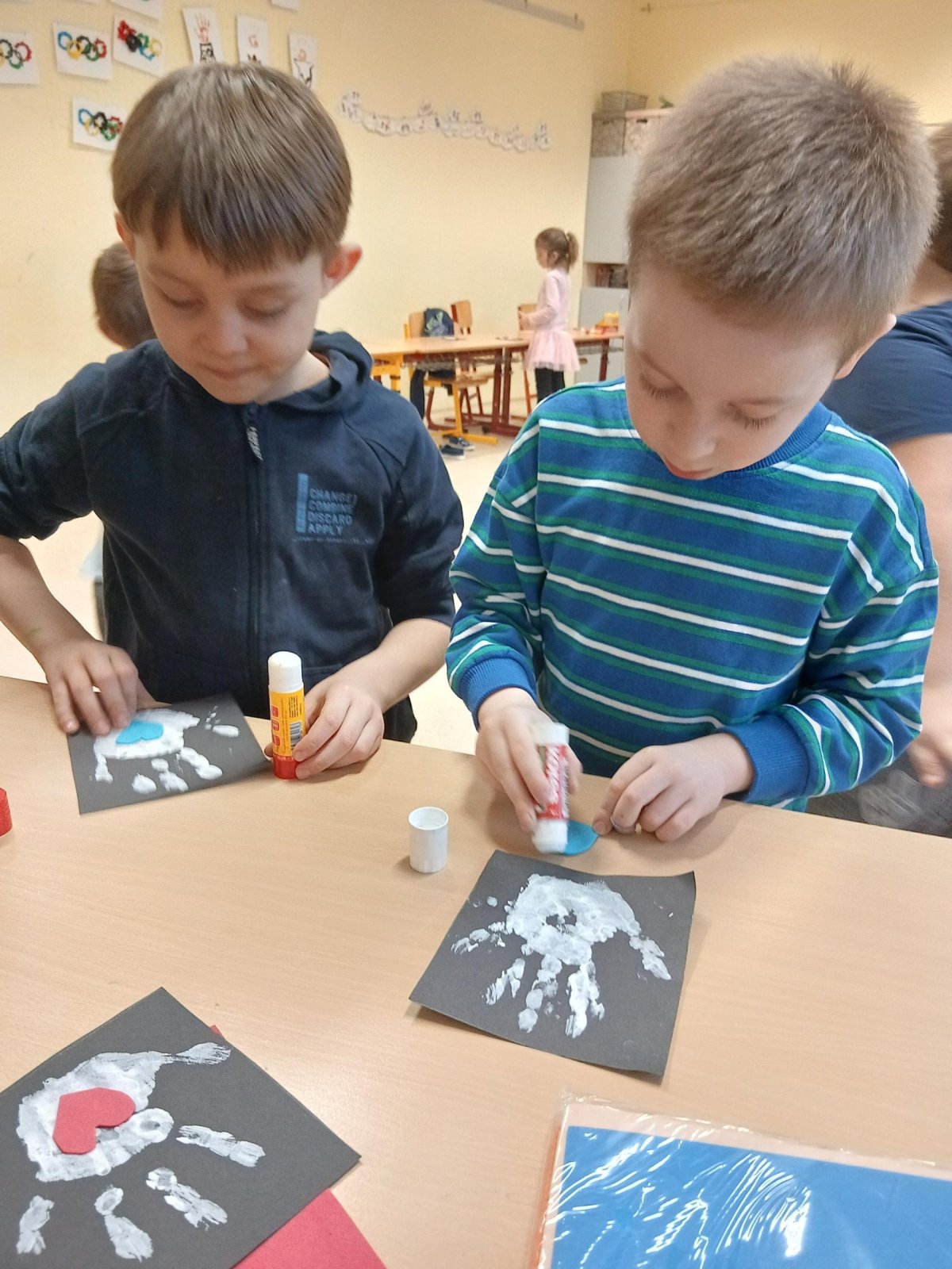 Ve školní družině jsme si užili krásné tvořivé odpoledne. Déti se s nadšením zapojily do výroby obrázků pomocí otisku ruky a srdíček. Každý obrázek je originální a nese v sobě kus dětské radosti, fantazie a šikovnosti.