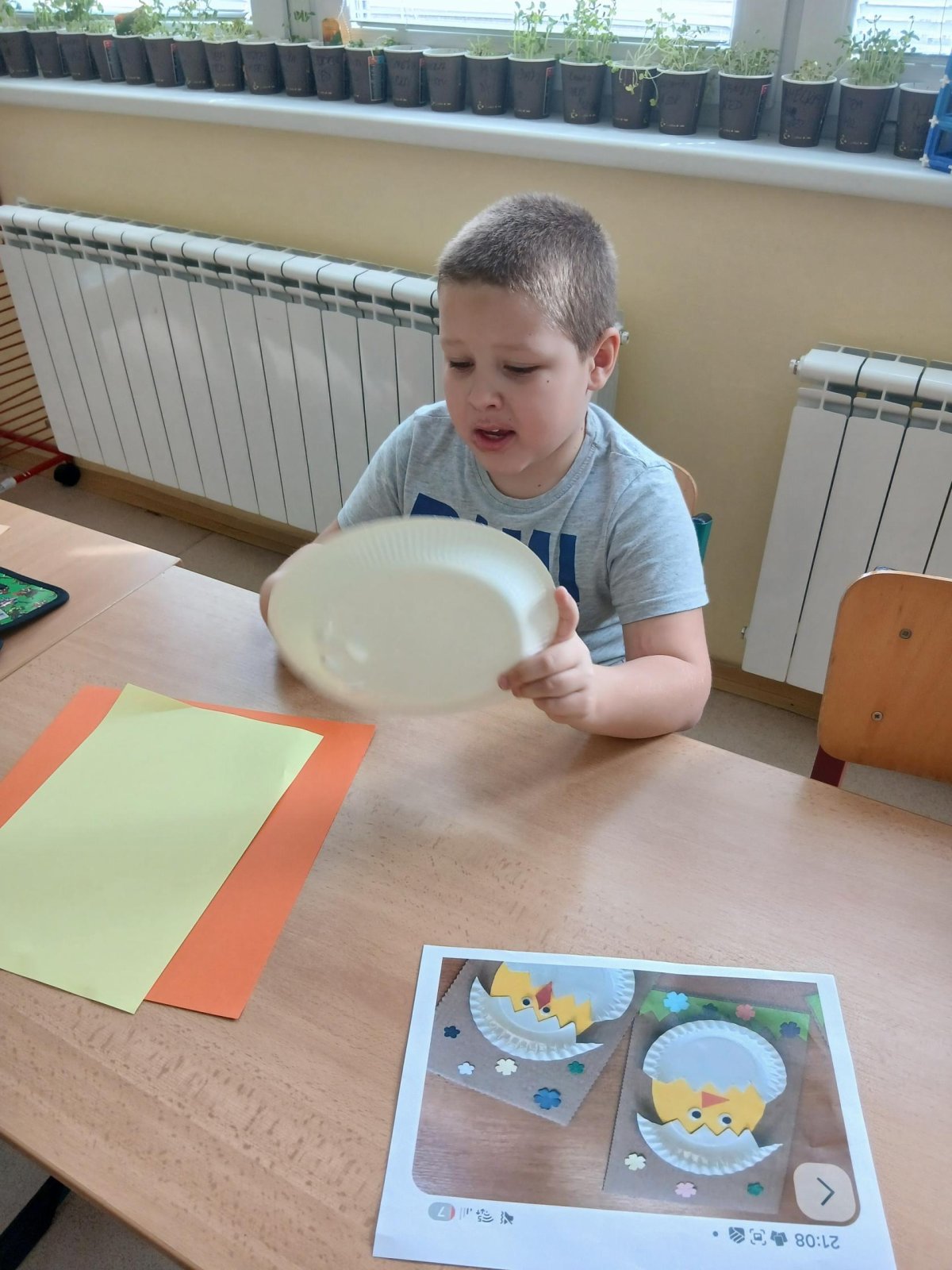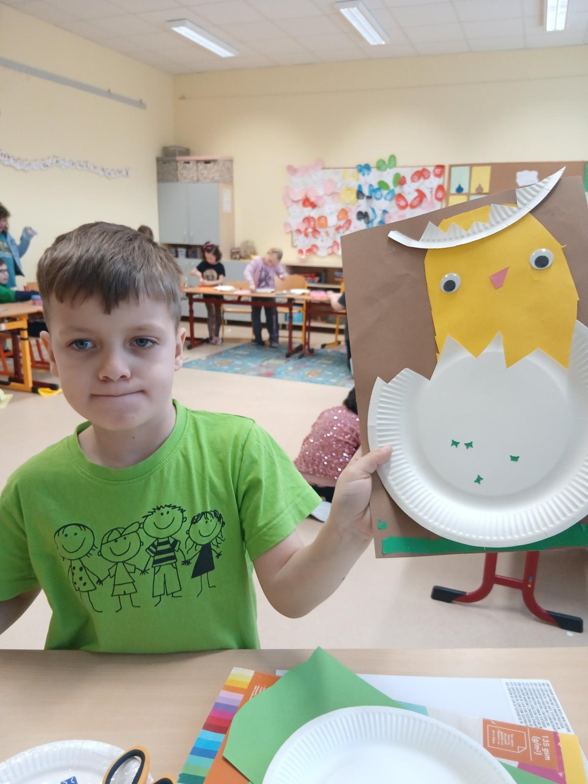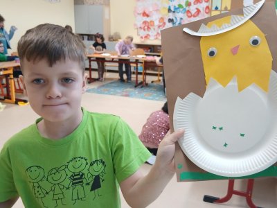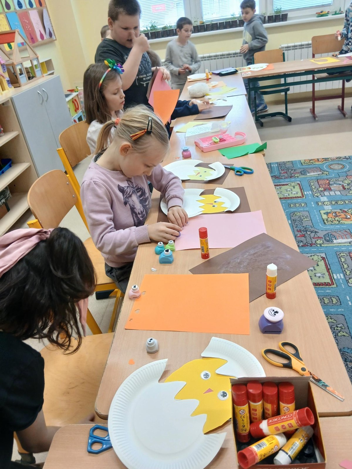 Děti ve školní družině se s nadšením pustily do velikonočního tvoření. Tentokrát vyráběly roztomilá kuřátka z papírových talířků, která se klubou ze skořápky. Pomocí barevného papíru, lepidla a vlastní fantazie vznikla veselá a originální díla, která nám připomínají přicházející jaro a velikonoční čas.