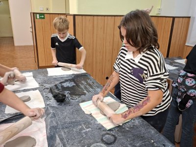 Vůbec nám nevadí, že máme ruce umazané, na nose čmouhu od hlíny, o oblečení se bude muset postarat maminka s pračkou, ale máme radost z hezkého tvoření z hlíny. A až to vypálíme a naglazujeme, to bude teprve krása.