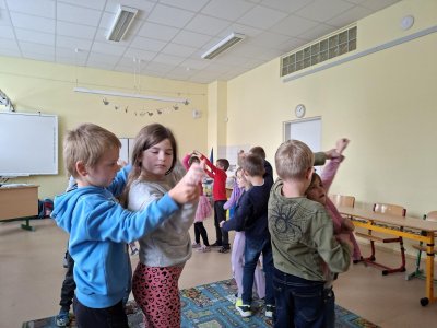 Už tři týdny svědomitě trénujeme na naše vystoupení pro babičky a dědečky. Vybrali jsme si zdánlivě jednoduchý taneček, ale sladit kroky a hudbu je pro nás prozatím těžké. Tak nám držte palce, abychom to dobře zvládli a předvedli se v tom nejlepším "tanečním" světle!
