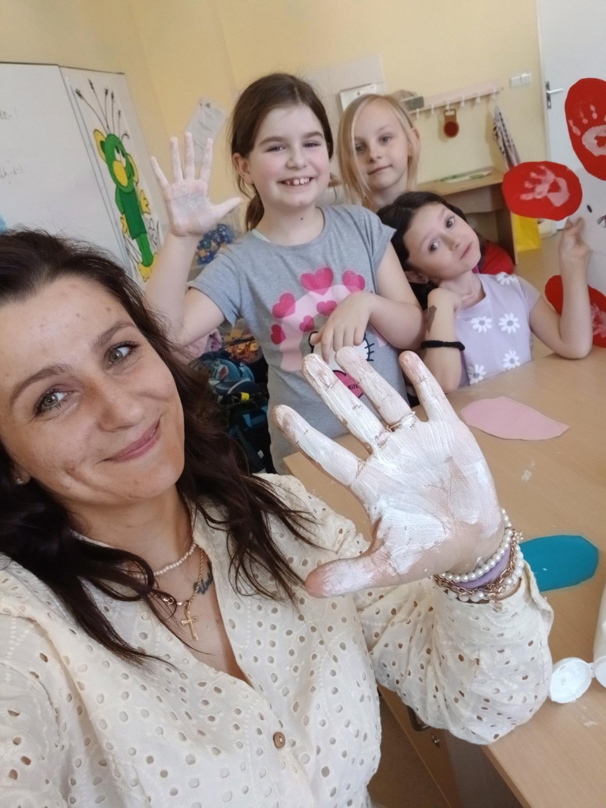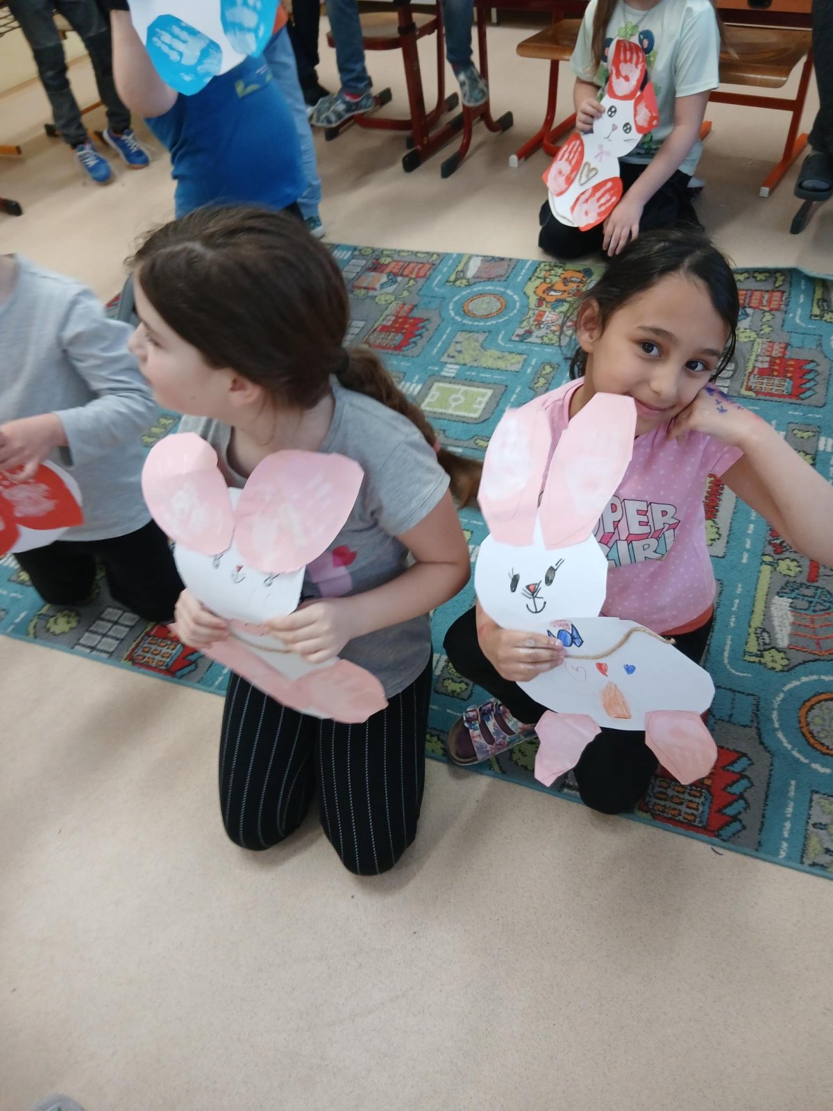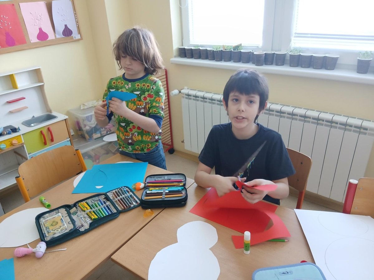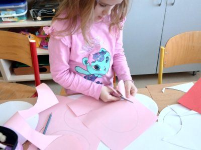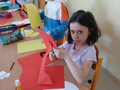 Nejprve si děti připravily základ z papíru, poté pomocí barev vytvořily otisky svých dlaní, které se proměnily v roztomilé detaily zajíčka. Při práci jsme si povídali o velikonočních tradicích a symbolech jara.