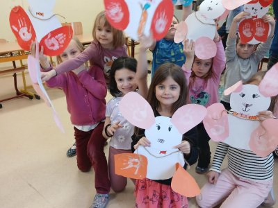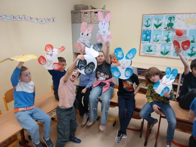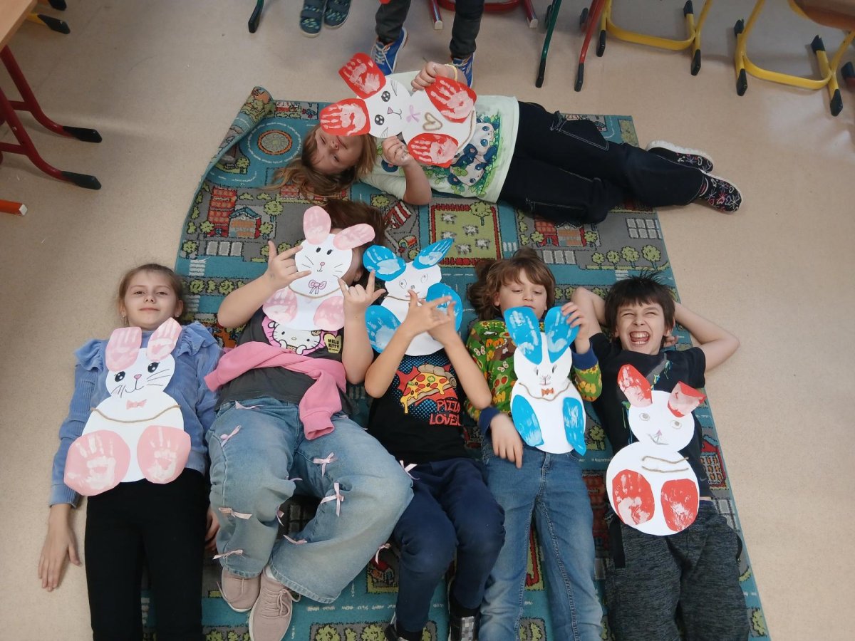 Ve školní družině jsme se pustili do velikonočního tvoření. Děti vyráběly veselé zajíčky, jejichž ouška a tlapky vznikly pomocí otisků dětských ručiček. Každý zajíček byl originální a nesl v sobě kousek jarní nálady i dětské fantazie.
