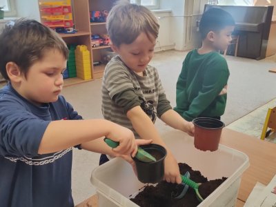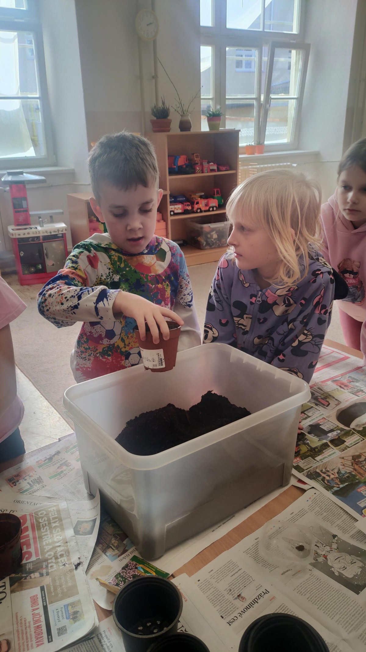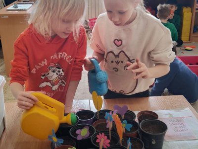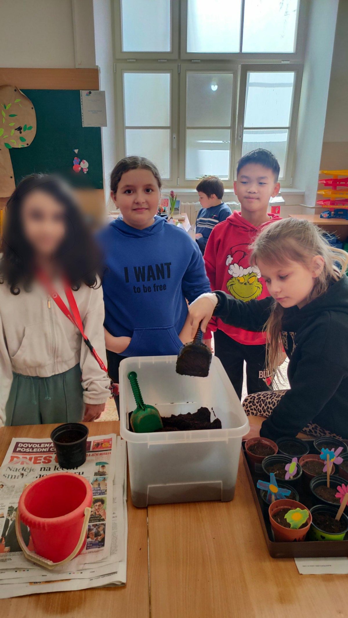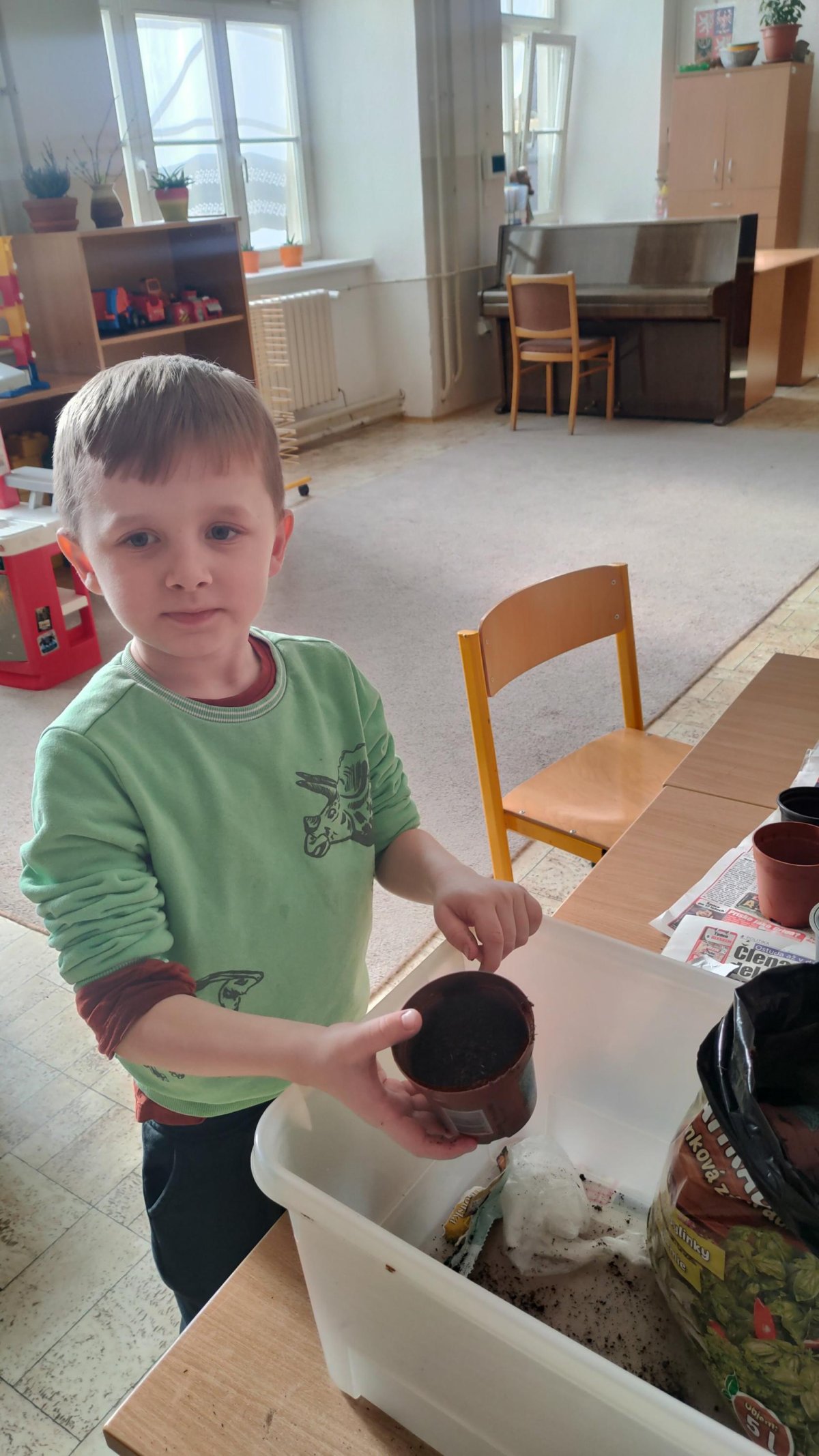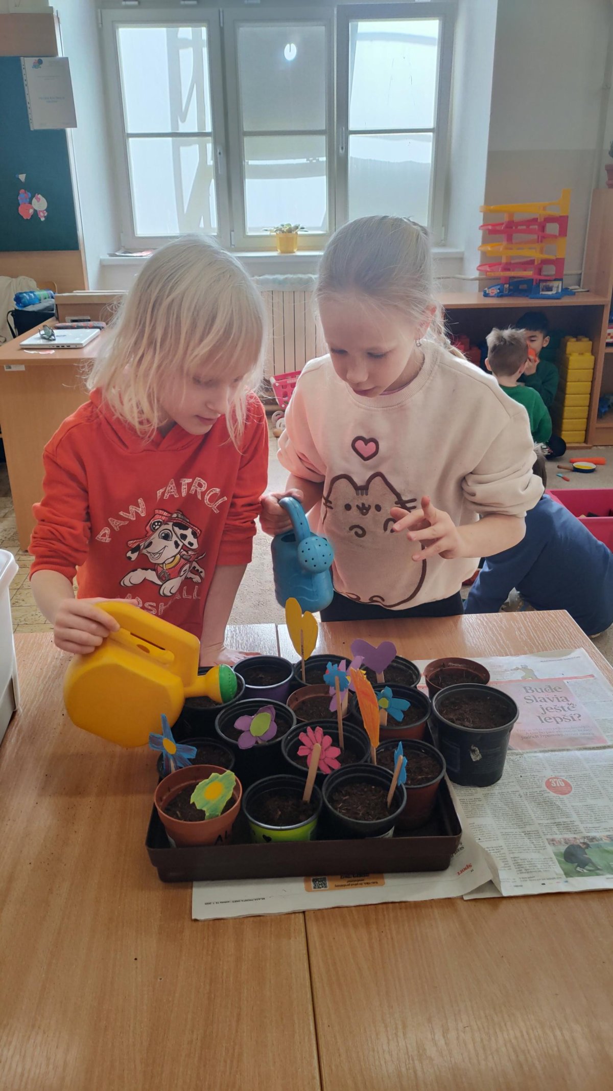Každý den se teď o květináčky staráme a semínka zaléváme, aby nám pěkně rostla.