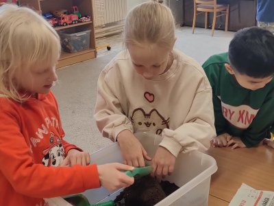 Musíme přiznat, že sázení bavilo všechny děti, ale po tomto pracovním dni, bychom s čistým svědomím mohli jmenovat Zuzanku a Natálku vrchními zahradnicemi.
