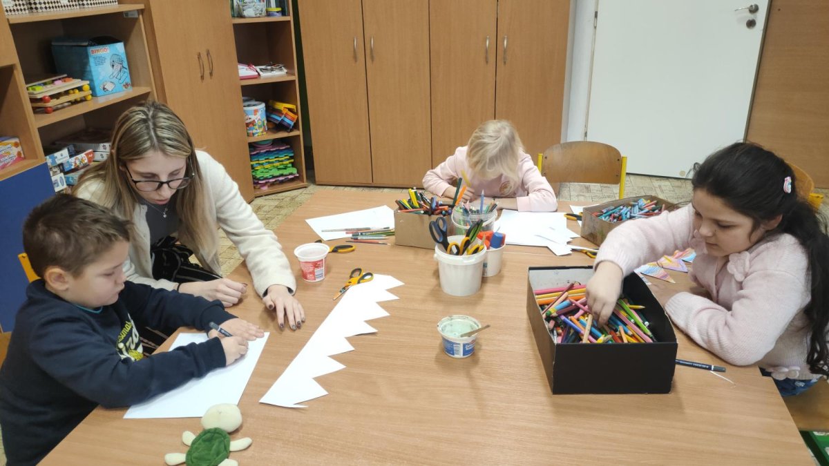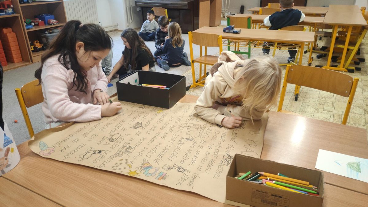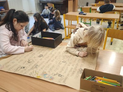 I jejich příběh nás zaujal. A abychom se k němu mohli vracet, vytvořili jsme si podle něj plakát, kde místo některých slov děti namalovaly obrázky.