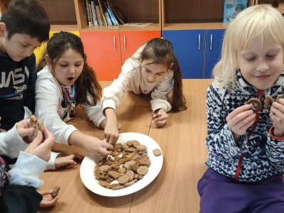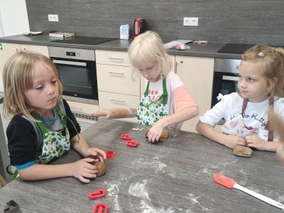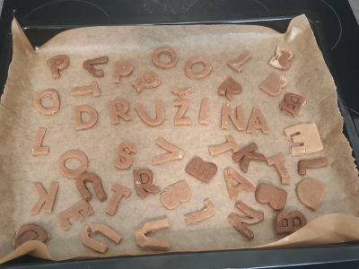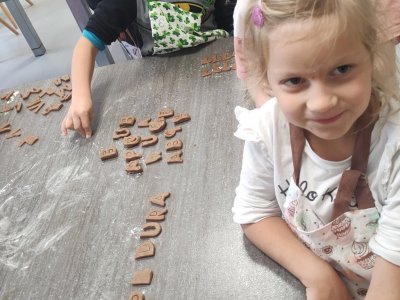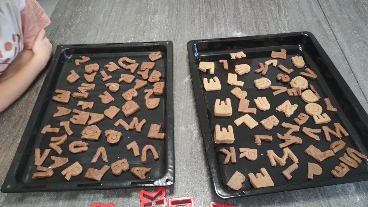 A co to bude tentokrát? Začal nový školní rok, některé děti se začaly učit písmenka a ti, co už je znají, si je opakují. Tak se do takového sladkého a voňavého opakování pustime taky a upečeme si písmenkové sušenky. My se při tom vlastně učíme i vážit a odměřovat, počítat kolik přidáme vajec a kolik lžiček koření. A nejen to. Nejdůležitější je, že se učíme spolupracovat a domluvit se spolu.