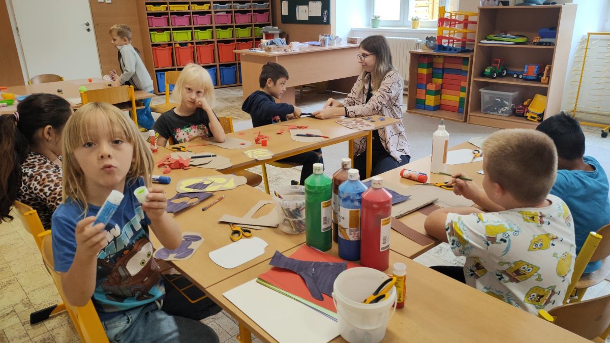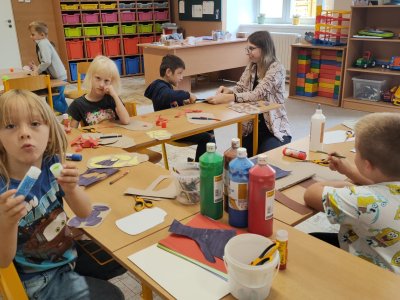 Co s podzimní úrodou? Co nesníme čerstvé, to můžeme zavařit do sklenic. A my jsme si to právě vyzkoušeli. Tentokrát jen z papíru, ale i to nás bavilo.Hlavně jsme trénovali stříhání nůžkami, míchání barevných odstínů na okurky, jablka nebo švestky. Ze všeho nejvíc jsme ale potřebovali trpělivost. A jak vidíte, stalo to za to.