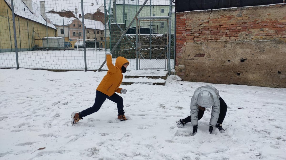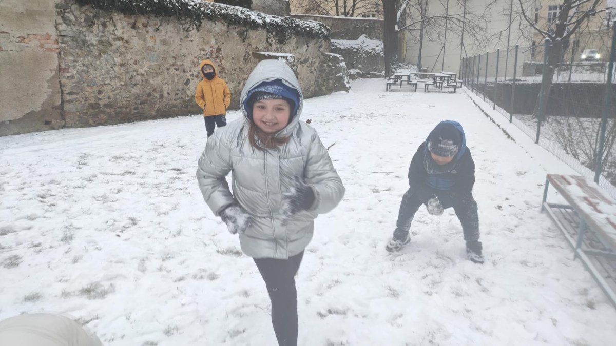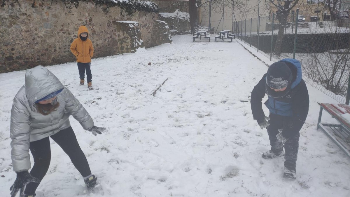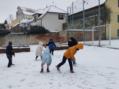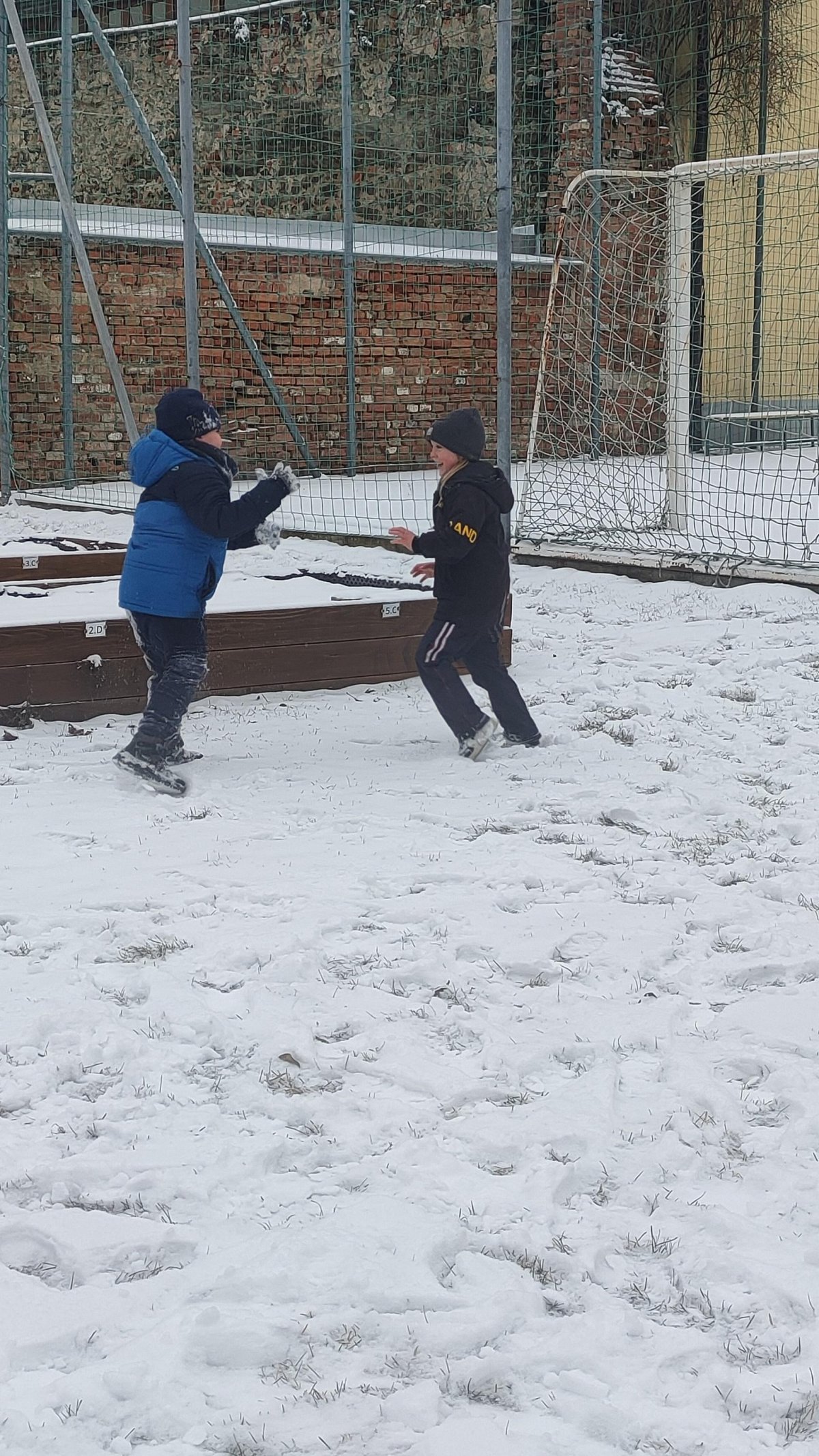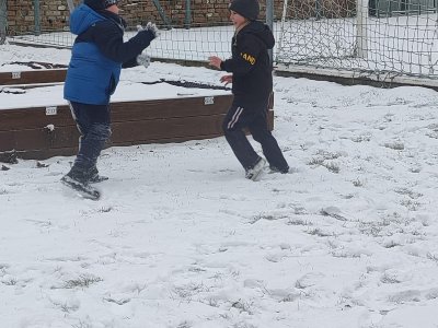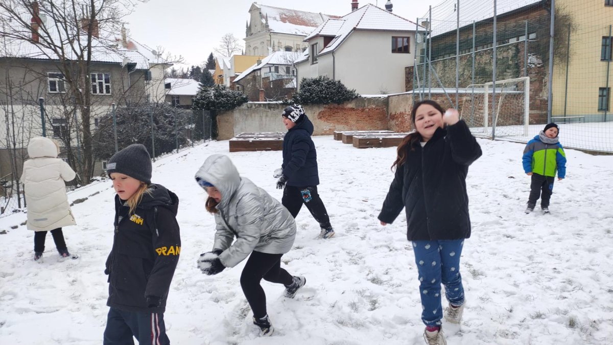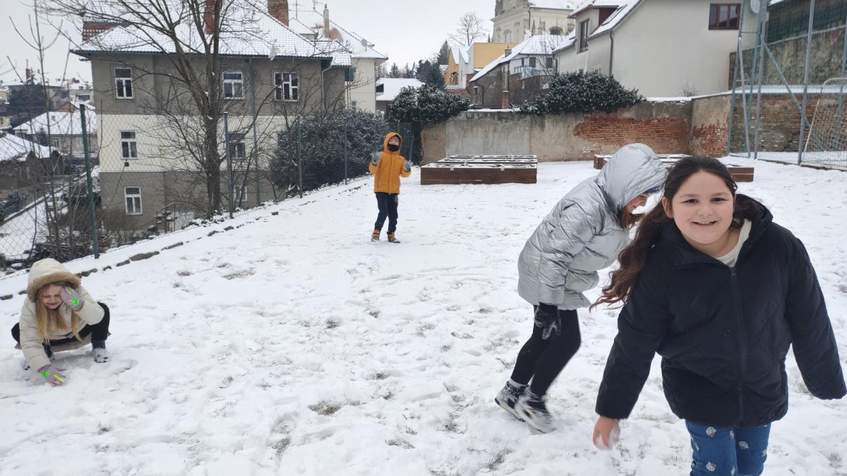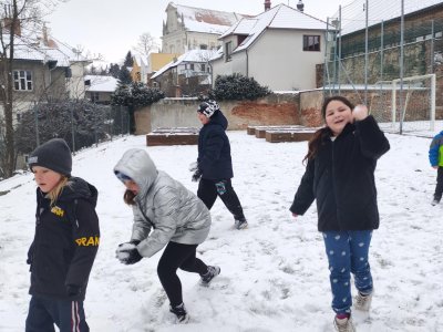 Řádili jsme ve sněhu, dělali andílky, koulovali se, počítali vločky. Užili jsme si to náramně. A pak honem do družiny - zahřát se a usušit.