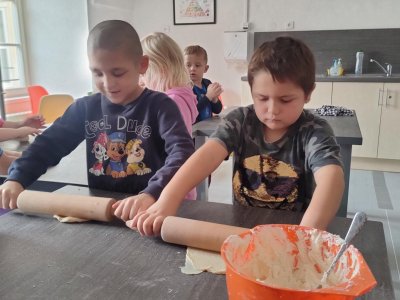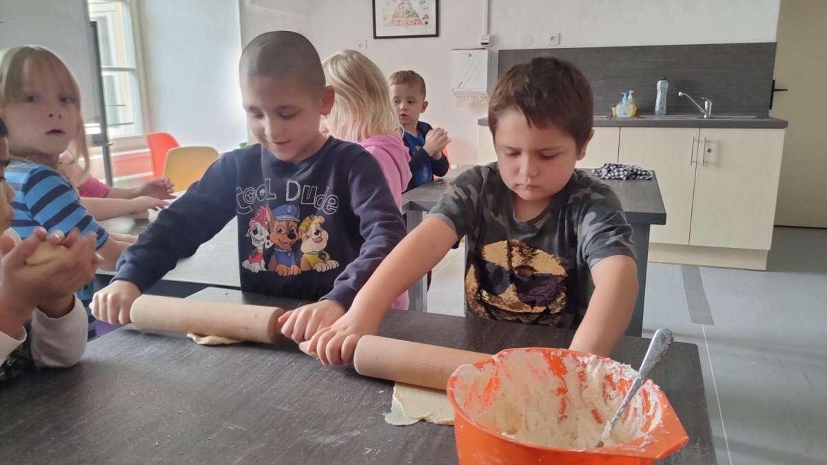 I letos jsme si svátek sv. Martina připomněli svatomartinskými rohlíčky. Naše kroky vedly proto do kuchyňky. Všichni si chtěli zkusit vážení a odměřování surovin, míchání těsta, válení, krájení nebo tvarování.
