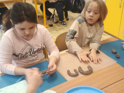 Ale nezůstalo jen u pečení. Vyráběli jsme i podkovy. Ty sice nemůžeme sníst, zato si je můžeme pověsit na zeď, aby se nás drželo štěstí