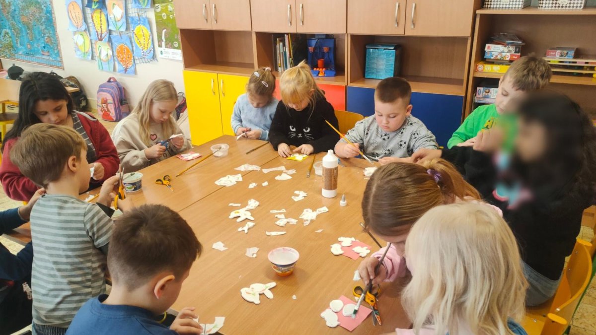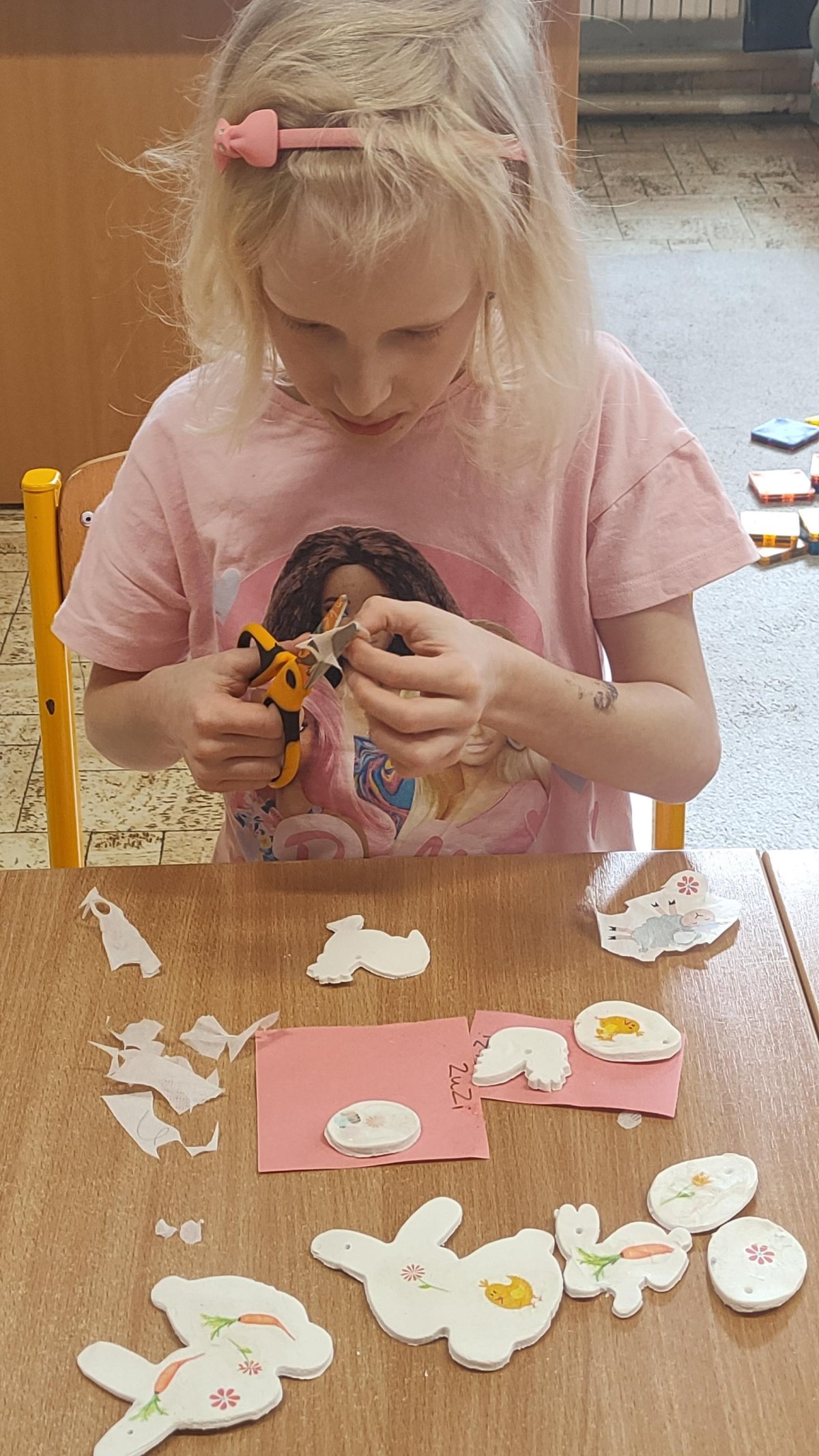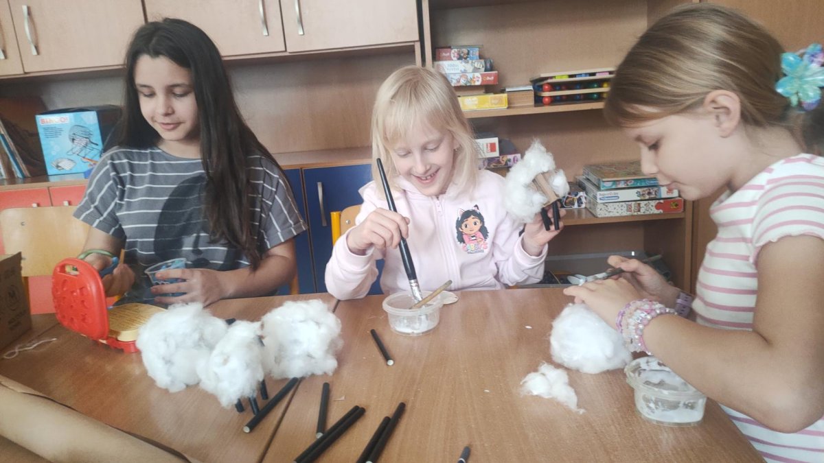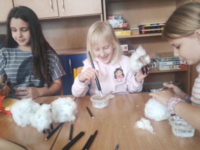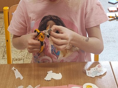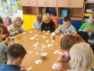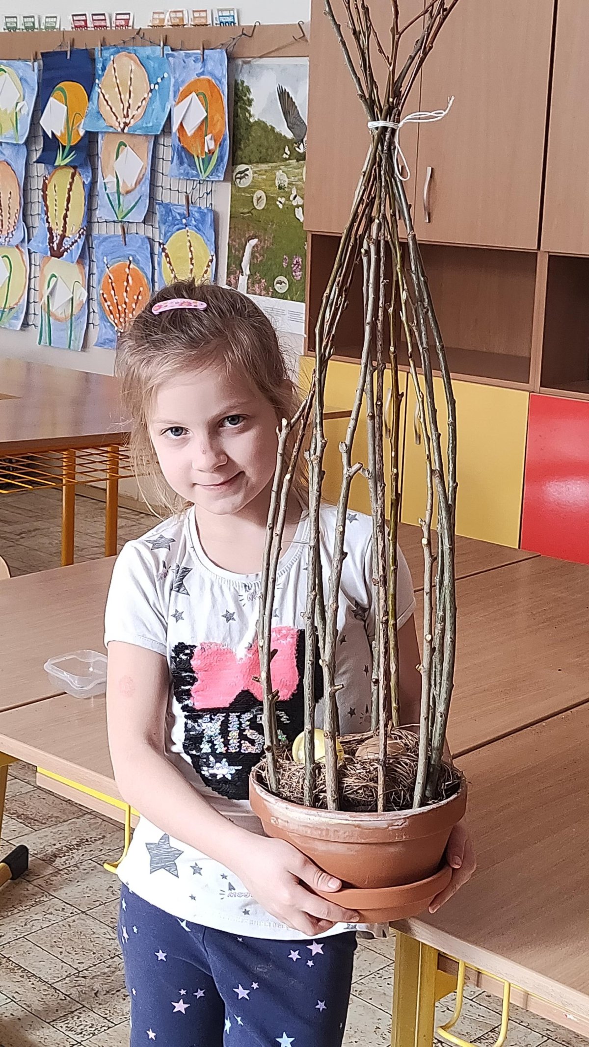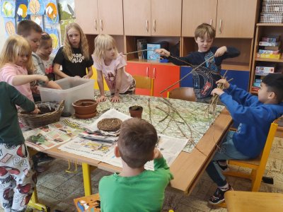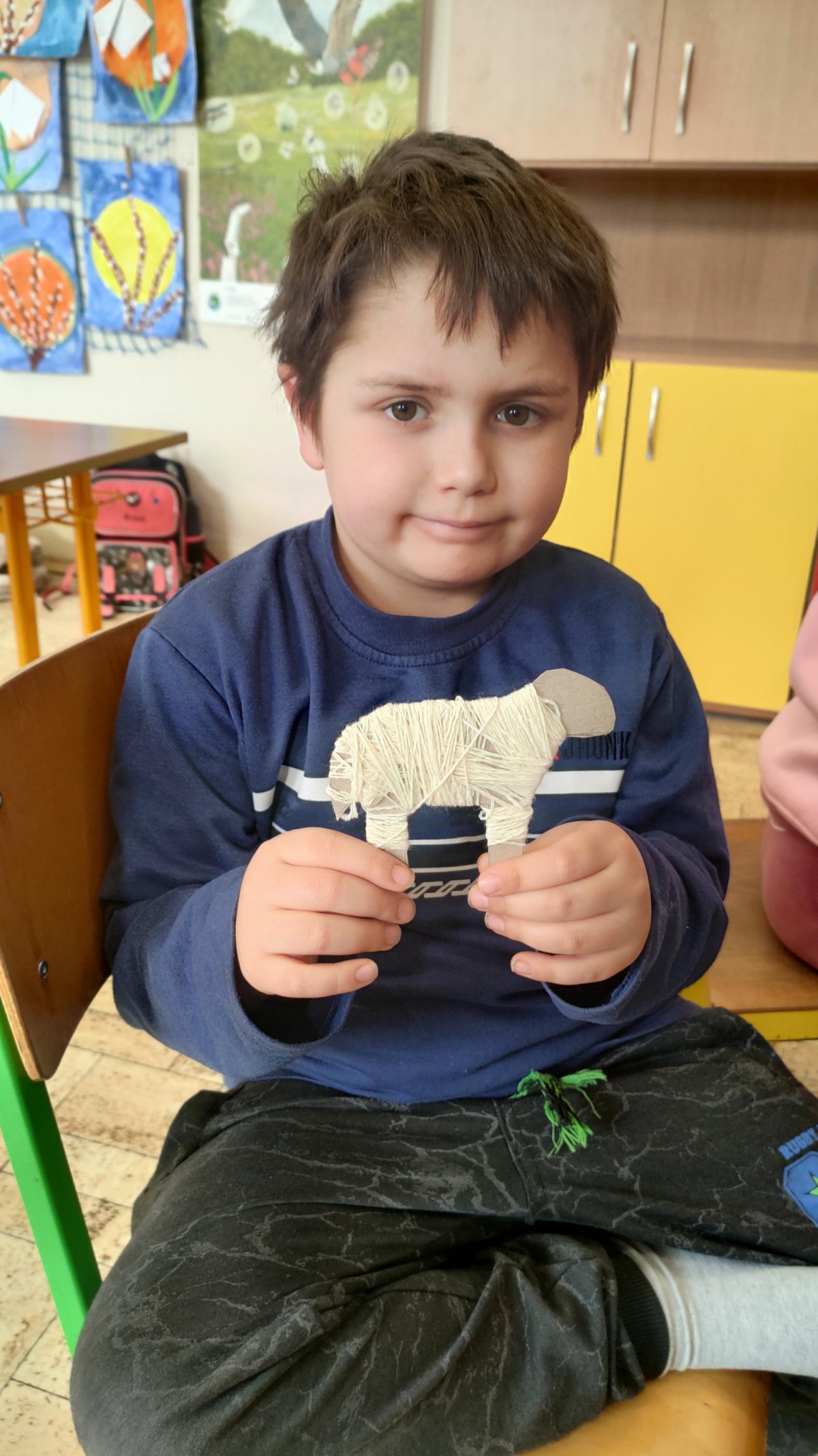 Podívejte, jak jsme si letos pohráli s velikonoční výzdobou. Ve vypěstovaném zeleném osení se schovávaji slepičky, jarní větvičky zdobí vajíčka a zajíčci a stádo oveček jsme oblékli do vlněných kabátků . Přinesli jsme si jaro až do školy a každý den nám dělá radost a dobrou náladu.