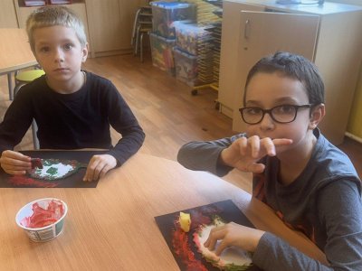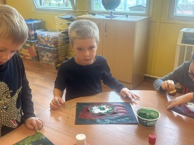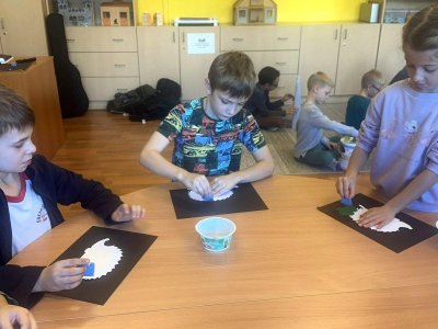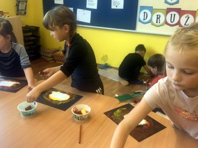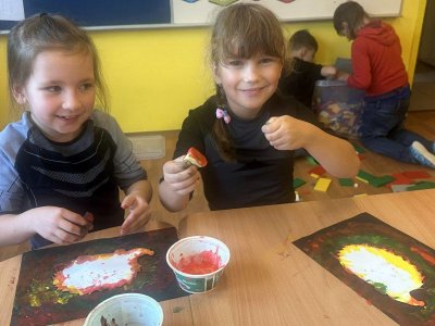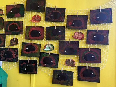 Vyrobili jsme si krásné ježky, které jsme ťukali houbičkami namočenými do temperových barev. Každý ježek byl originál a děti ho tvořily s velkým nadšením.