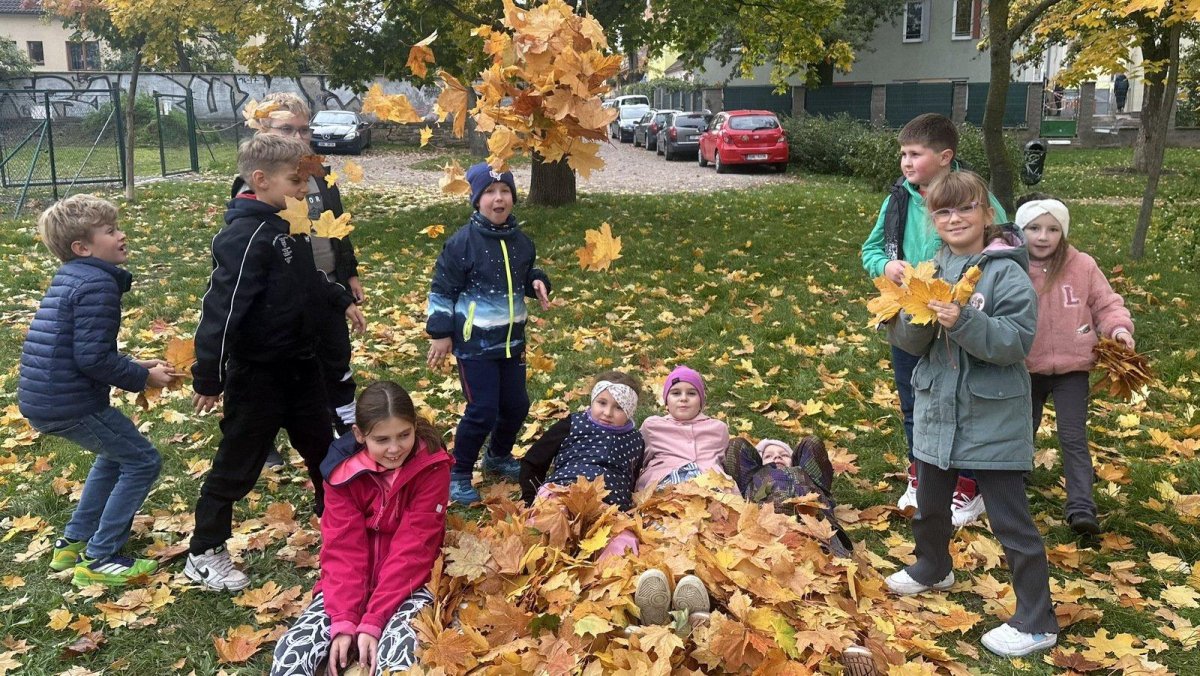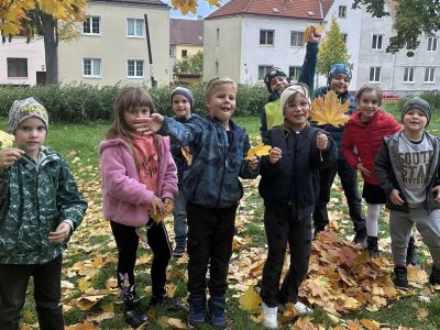 Nádherné listy v odstínech žluté, oranžové, červené a hnědé přímo vybízely k hraní. A my jsme si s nimi pořádně vyhráli a moc nás to bavilo! S ruměnými tvářemi a úsměvy na rtech jsme se vraceli zpět, plní krásných podzimních zážitků.