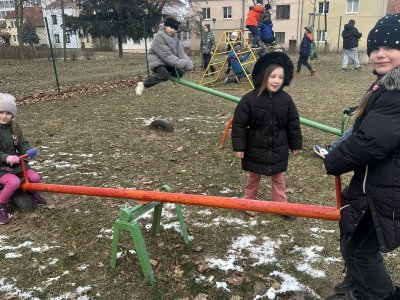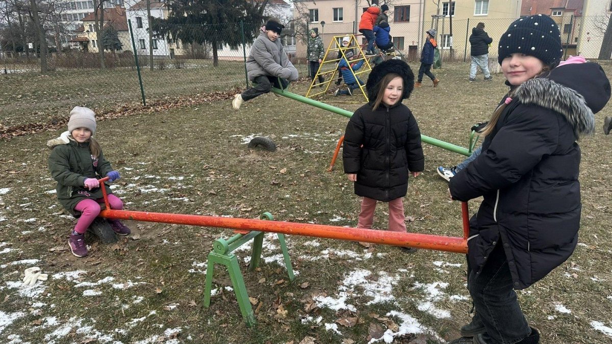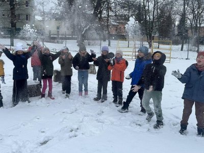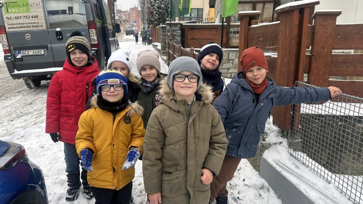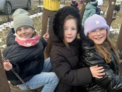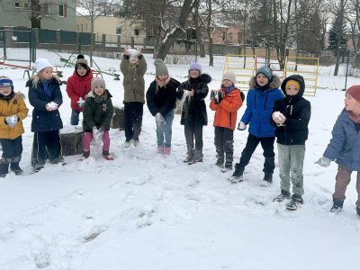První den byla nadílka skromnější, a tak jsme si zimní atmosféru užívali hlavně na hřišti. Stačil ale jediný den a krajina se změnila k nepoznání. Schválně, poznáte na fotkách ten rozdíl mezi prvním a druhým dnem?