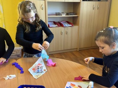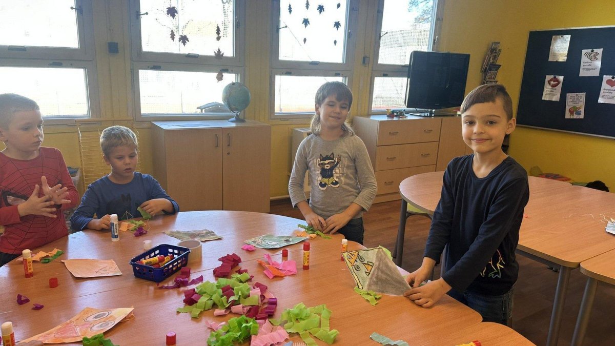 Všechny děti práce moc bavila. Teď nám naši draci létají na nástěnce v družině a zdobí celé naše oddělení. Podzim skutečně patří drakům.