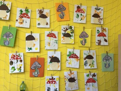 A protože nás houby tolik nadchly, rozhodli jsme si je i vyrobit. Barevné muchomůrky a hříbky teď zdobí naše prostory a vytváří útulnou podzimní atmosféru.