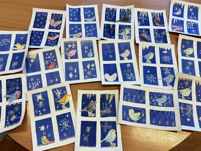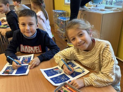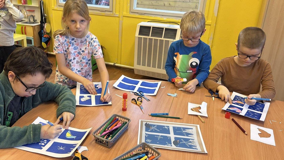 Tento týden jsme zažili opravdovou zimu. Mrazivé počasí nám vykouzlilo na oknech nádherné ledové ornamenty a venku občas i tiše sněžilo. Tato zimní atmosféra nás inspirovala k vytvoření nových výtvarných prací.