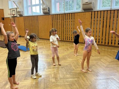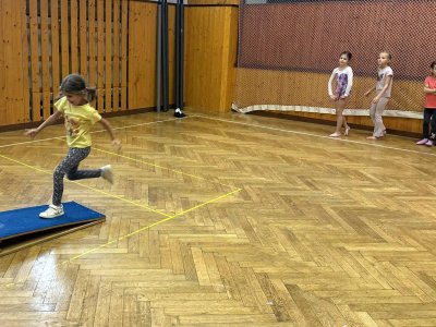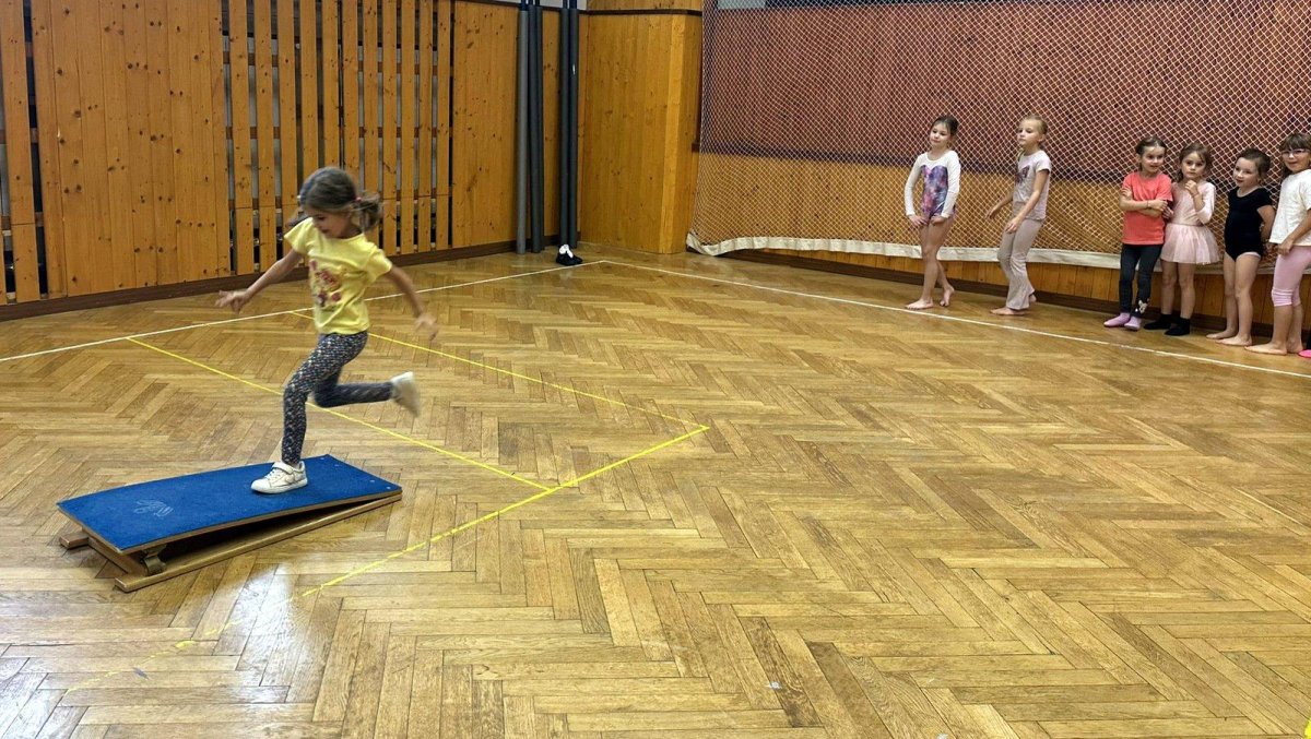 Hned při první hodině jsme začali pořádnou rozcvičkou, abychom si protáhli všechny svaly. Pak jsme se pustili do skoku přes vodu, což nás pořádně bavilo. Největší pozornost jsme však věnovali nácviku kotoulů, stojek a hvězd. Každý se snažil ze všech sil a vidět pokroky už během prvního tréninku bylo skvělé!