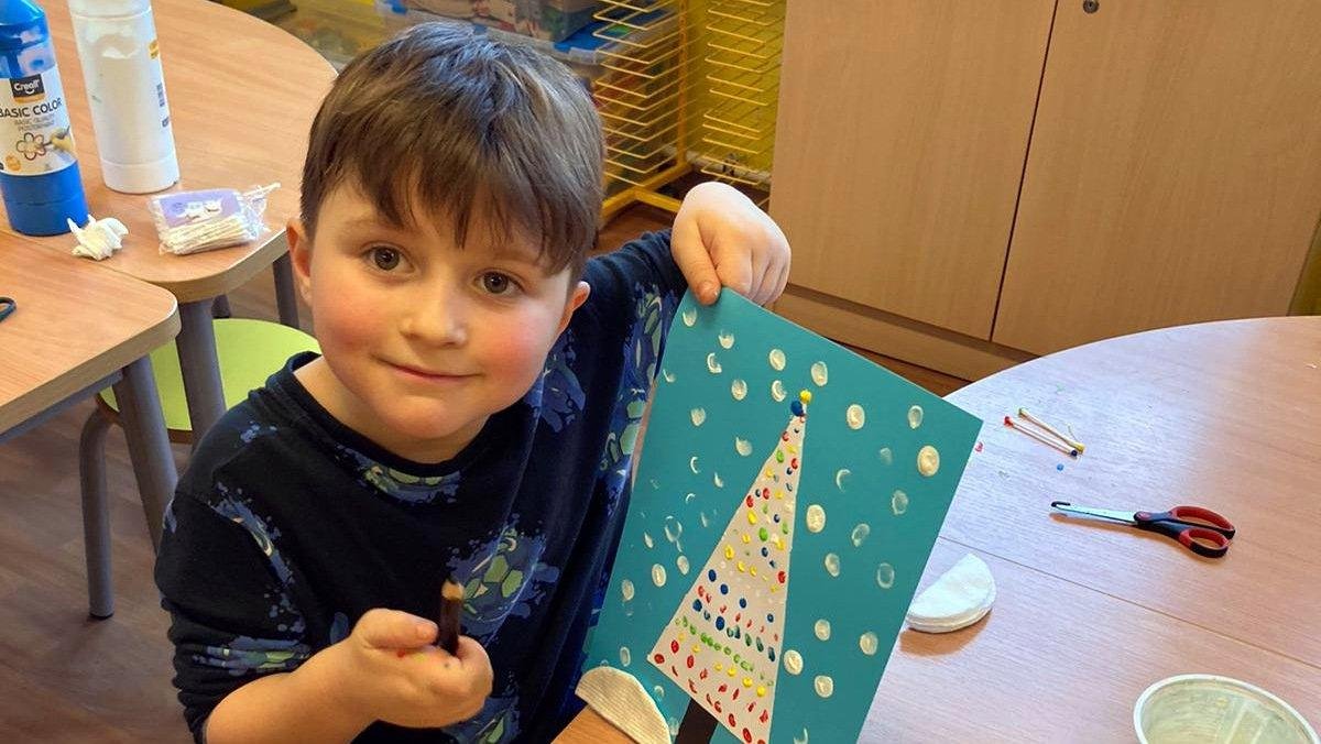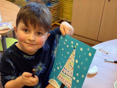 Nejprve jsme si vystřihli tvar stromečku, který se stal základem naší vánoční dekorace. Následovalo to nejzábavnější – prstíkem jsme na stromeček poťukali různé barvičky, které připomínaly pestré vánoční ozdoby. Každá barva dodala stromečku jedinečný vzhled a veselou náladu.