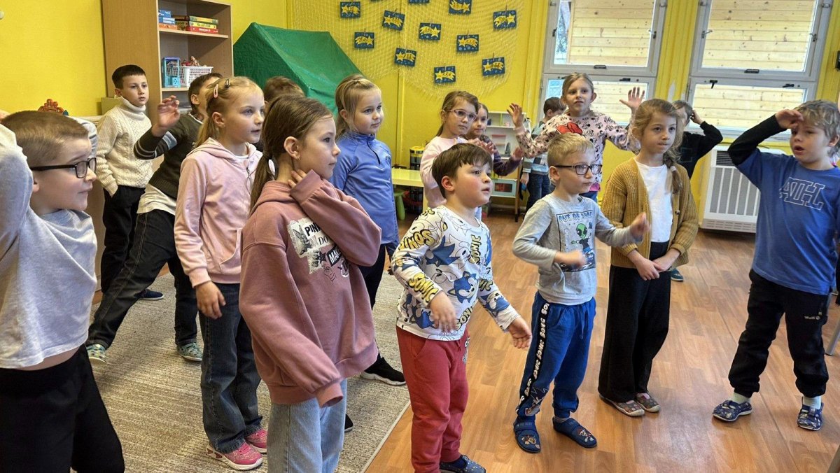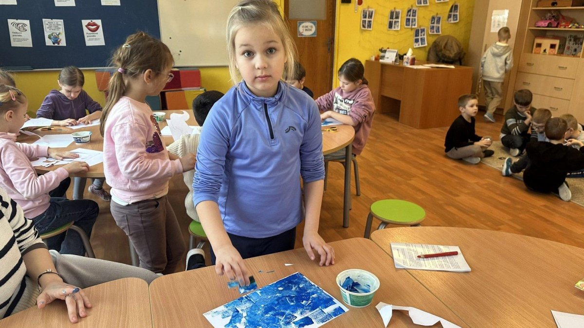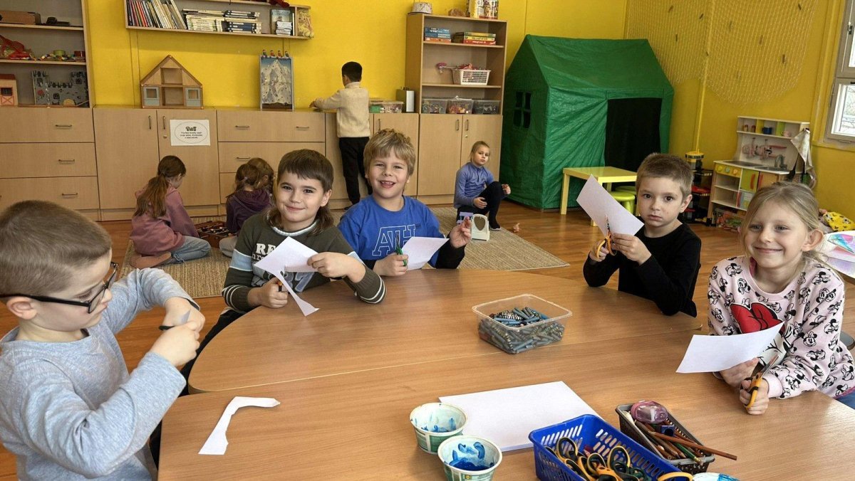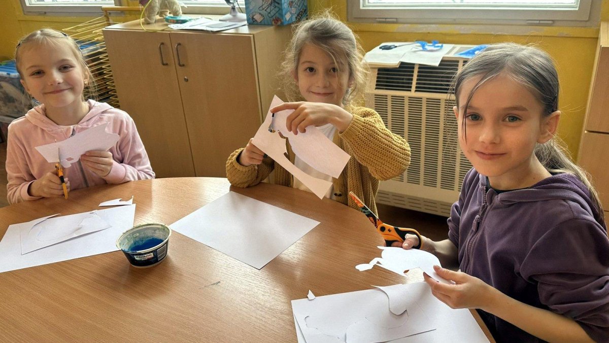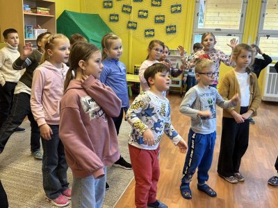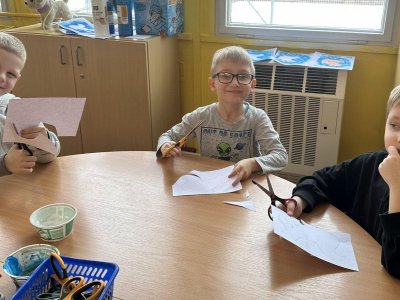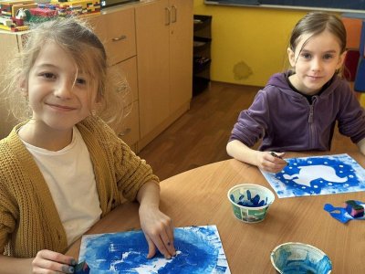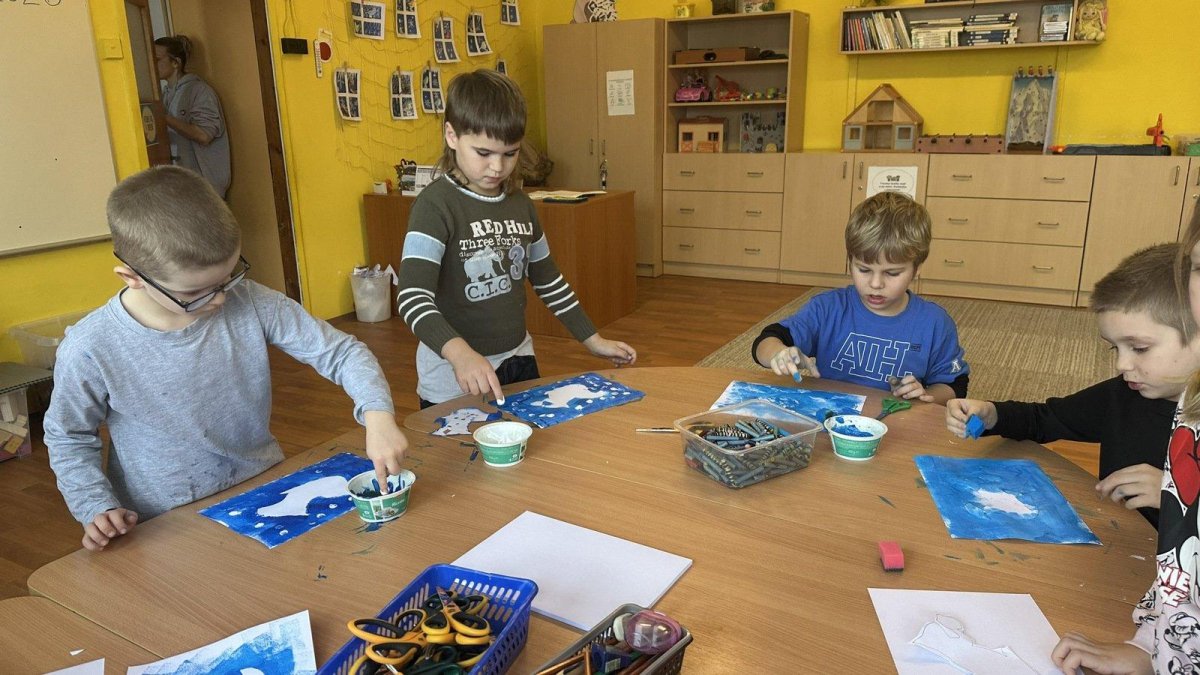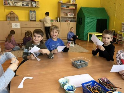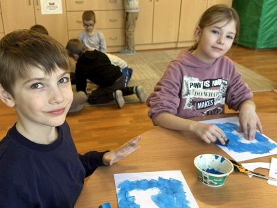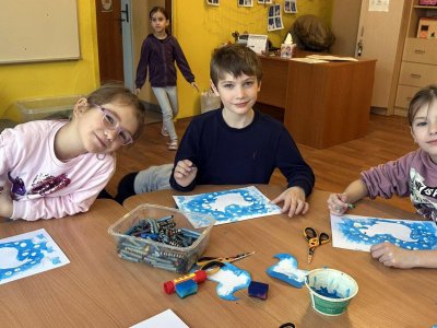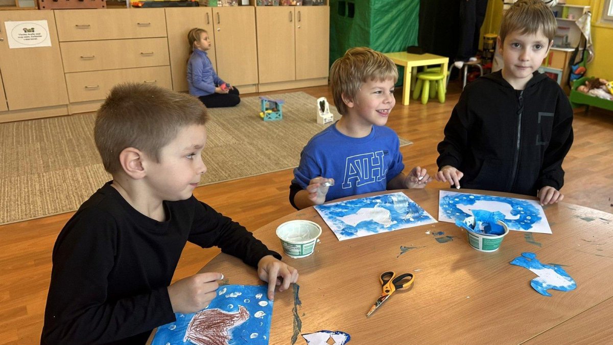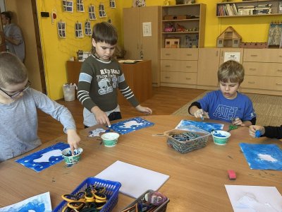 Dnešní den patřil veverkám – poslechli jsme si pohádku o veverce Terce, zazpívali si písničku a zahráli si na schovávanou s oříšky. Nejvíce se nám však povedlo zimní tvoření. Nejprve jsme si vystřihli šablonu veverky, kolem které jsme houbičkou nanesli „mrazivou“ barvu, a po zaschnutí veverku vybarvili a prstíky dotvořili padající sníh. Výsledkem jsou krásné zimní obrázky, které nám dělají velkou radost.