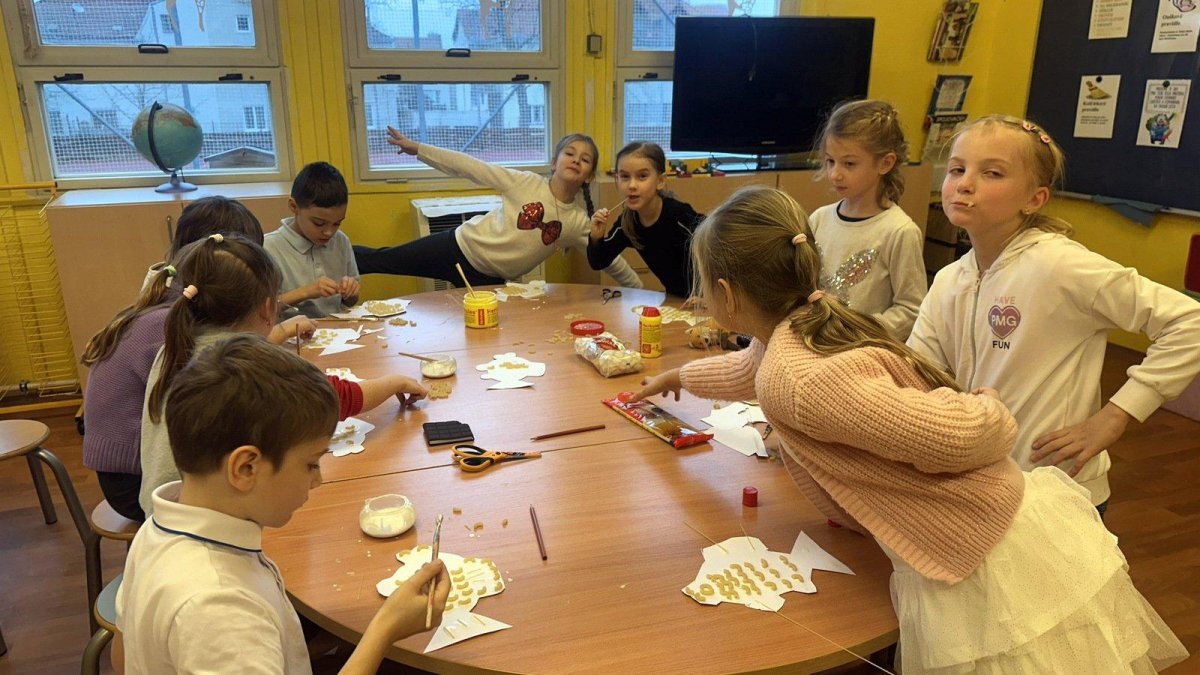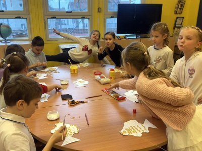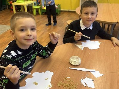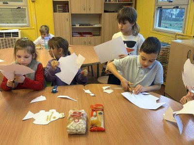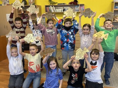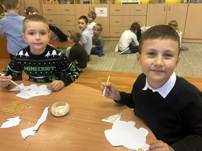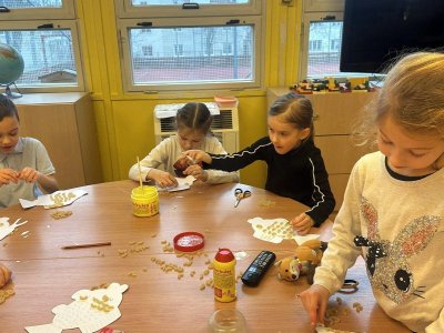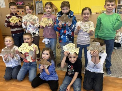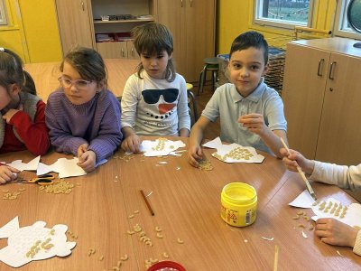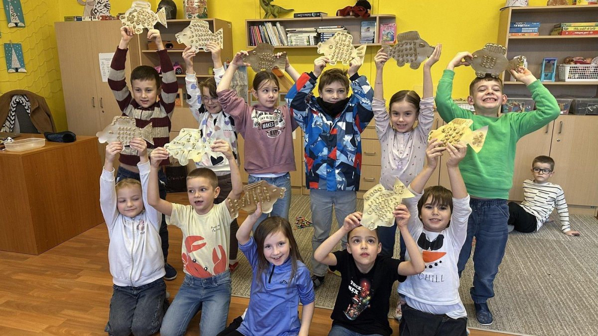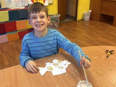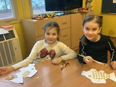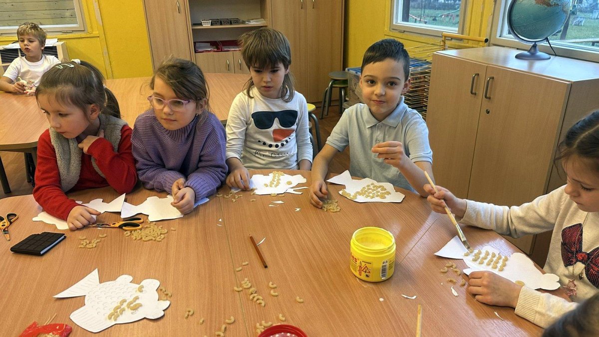 Na závěr roku jsme si společně vytvořili zlatého kapříka, který splní všechna přání. Za pomocí těstovin, lepidla a zlatého spreje se nám moc povedl.