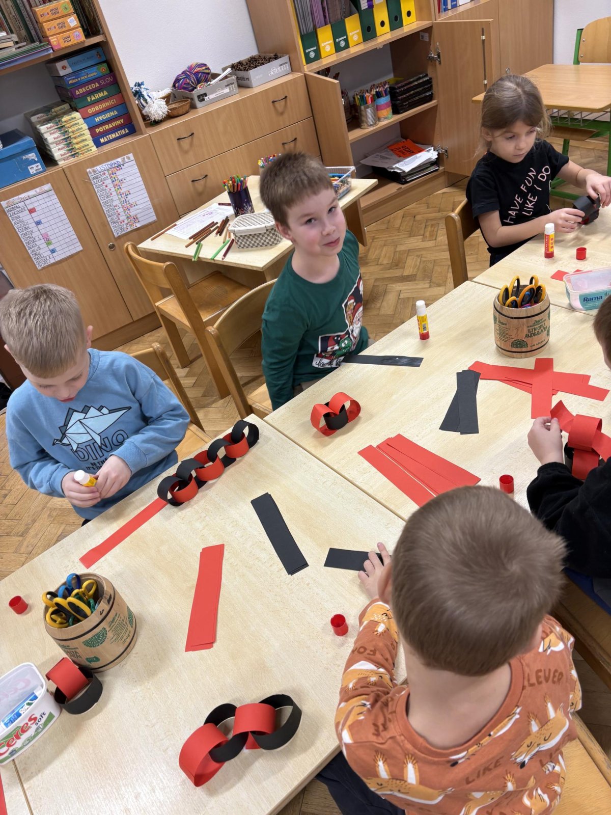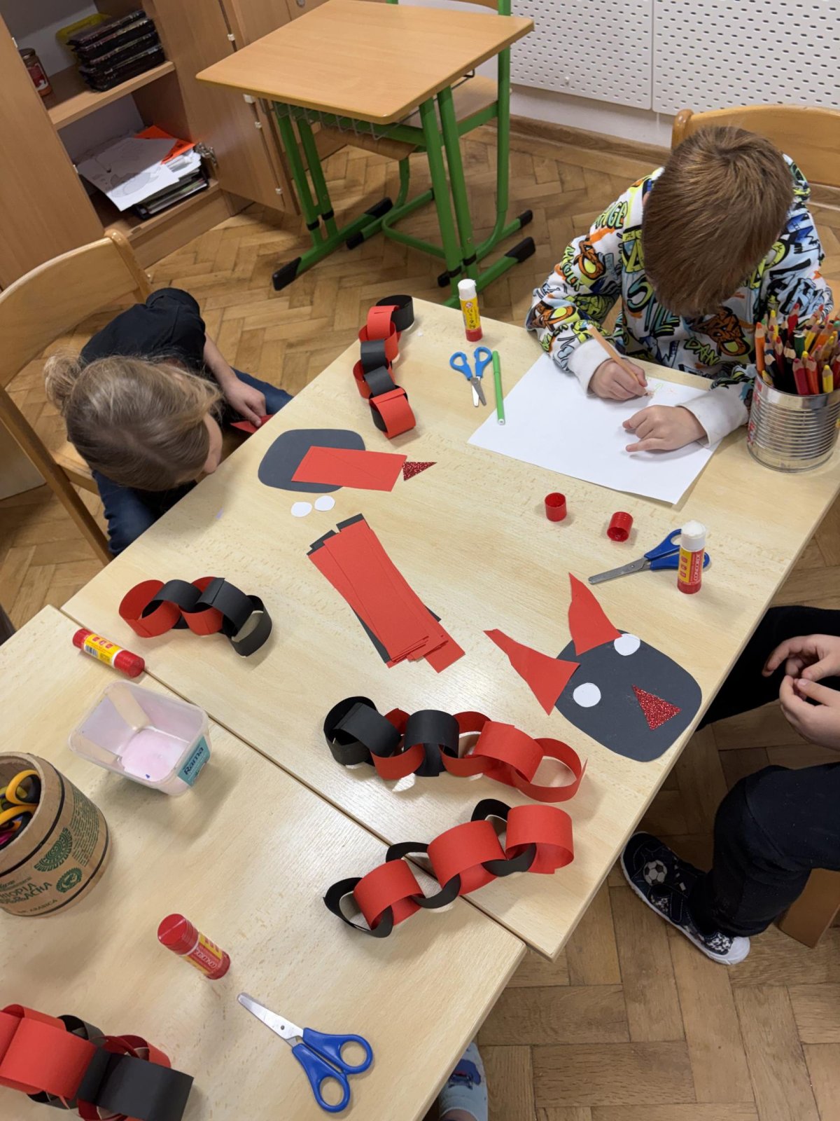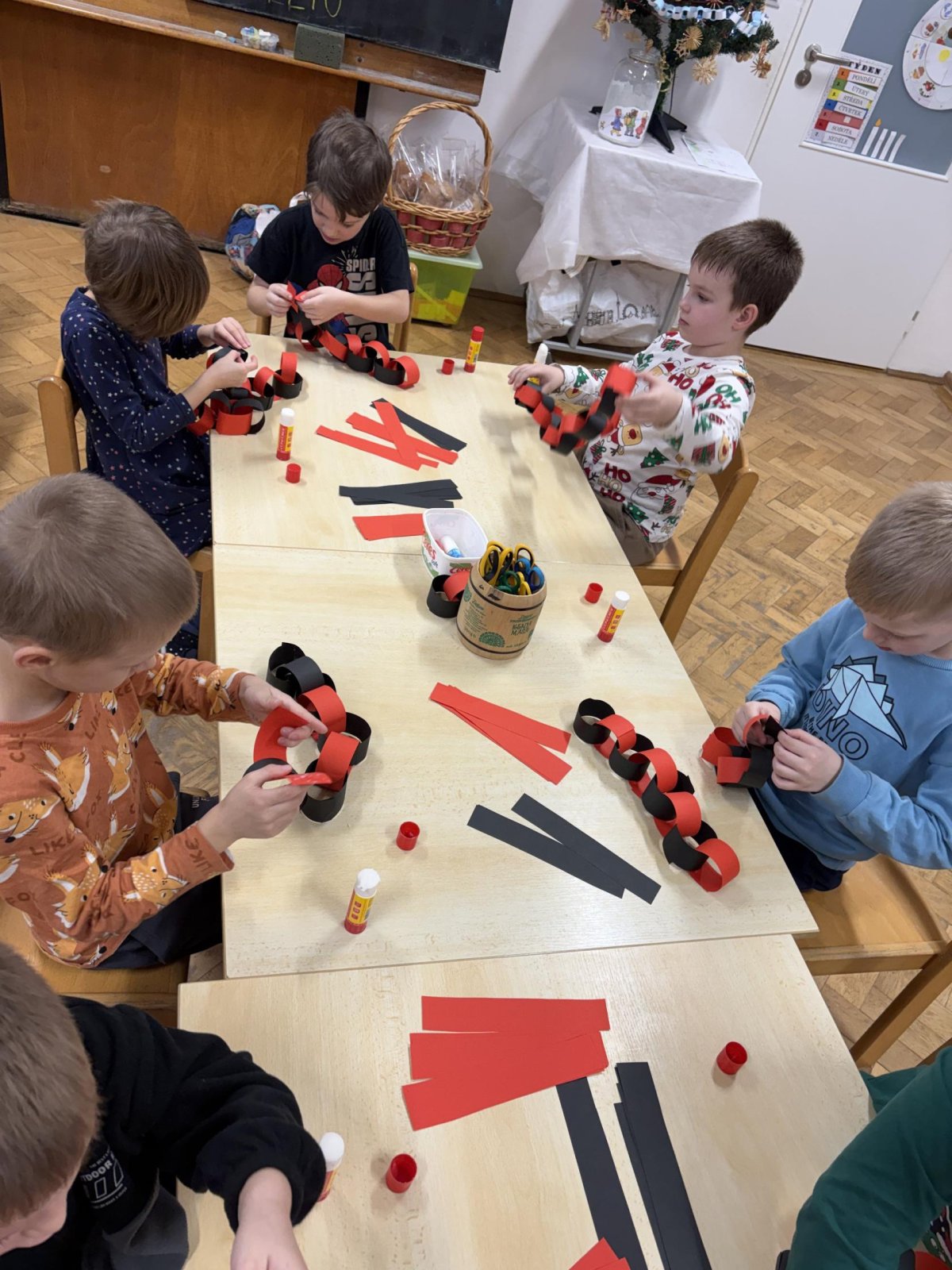 Pro hodné děti je to příchod anděla, ale pro zlobivé to znamená příchod čerta. My jsme si proto společně vytvořili takový “talisman” proti čertům. Děti si vyrobily čerta s řetězem, který je měl ochránit před samotným čertem. Do družiny se nám tedy všechny děti vrátily a čert si nikoho neodnesl.