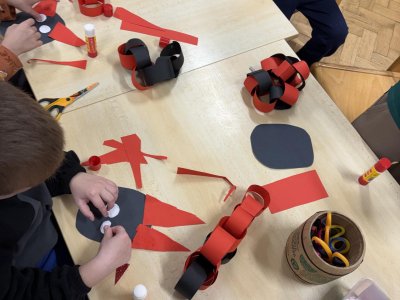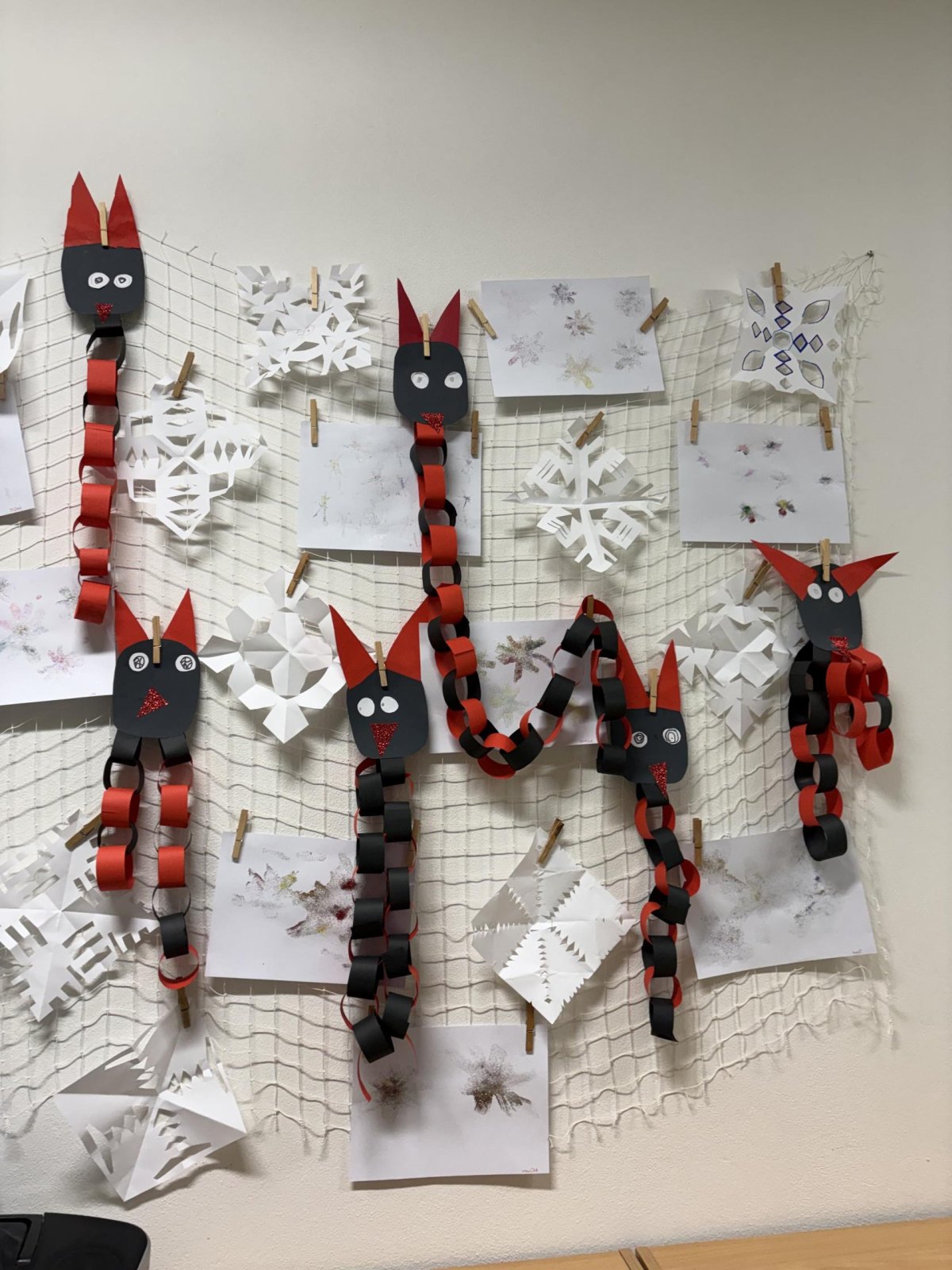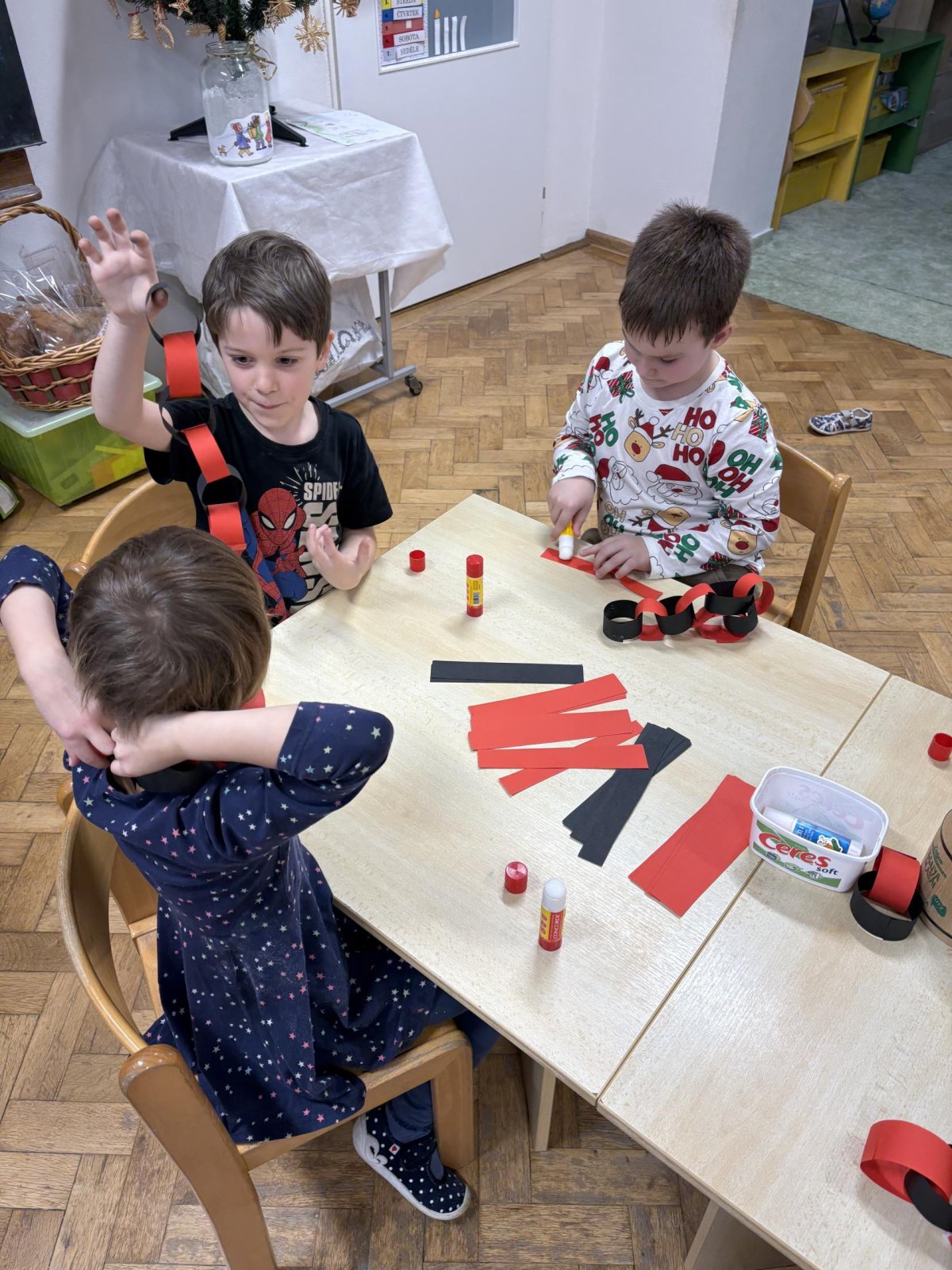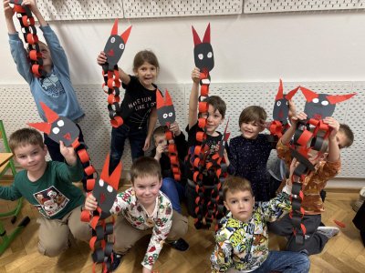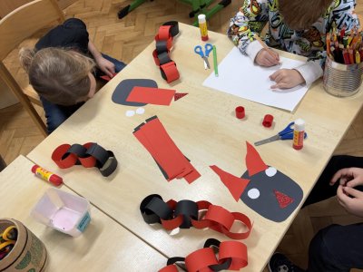 Pro hodné děti je to příchod anděla, ale pro zlobivé to znamená příchod čerta. My jsme si proto společně vytvořili takový “talisman” proti čertům. Děti si vyrobily čerta s řetězem, který je měl ochránit před samotným čertem. Do družiny se nám tedy všechny děti vrátily a čert si nikoho neodnesl.