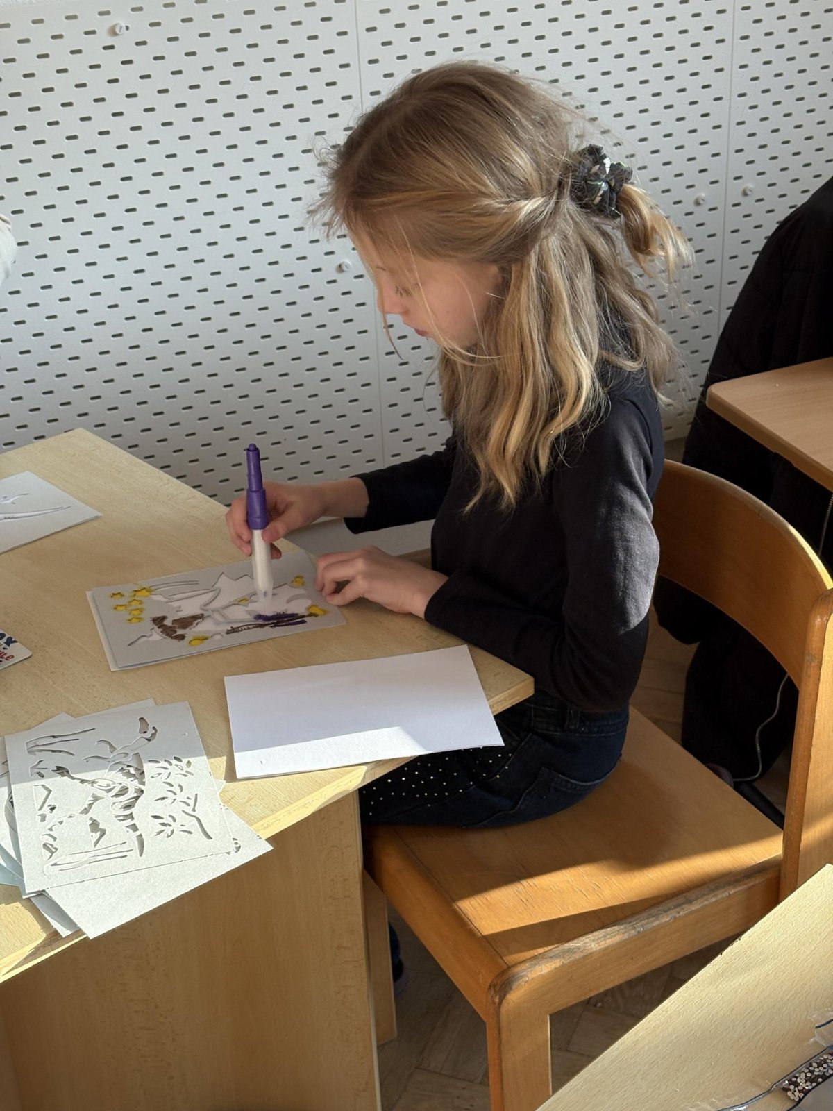 Podle vlastní volby si vybraly šablonu a postupně ji zaplňovali barvami.
