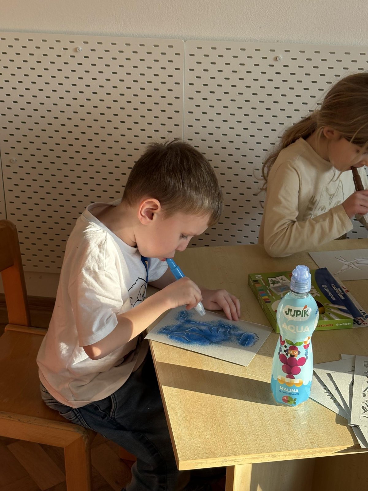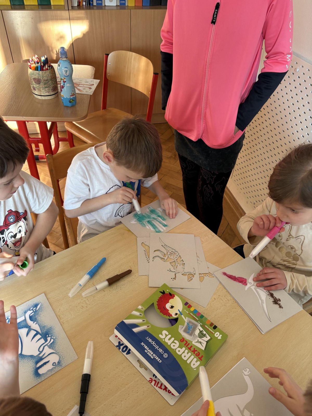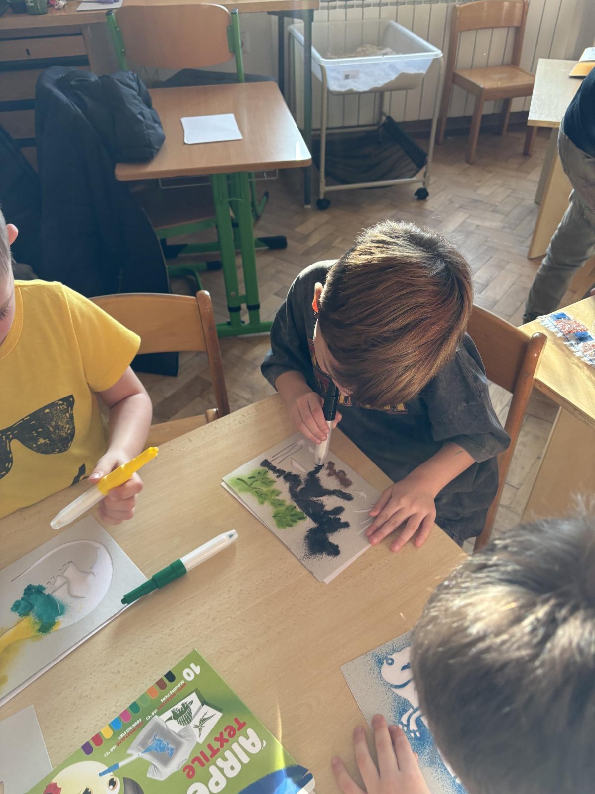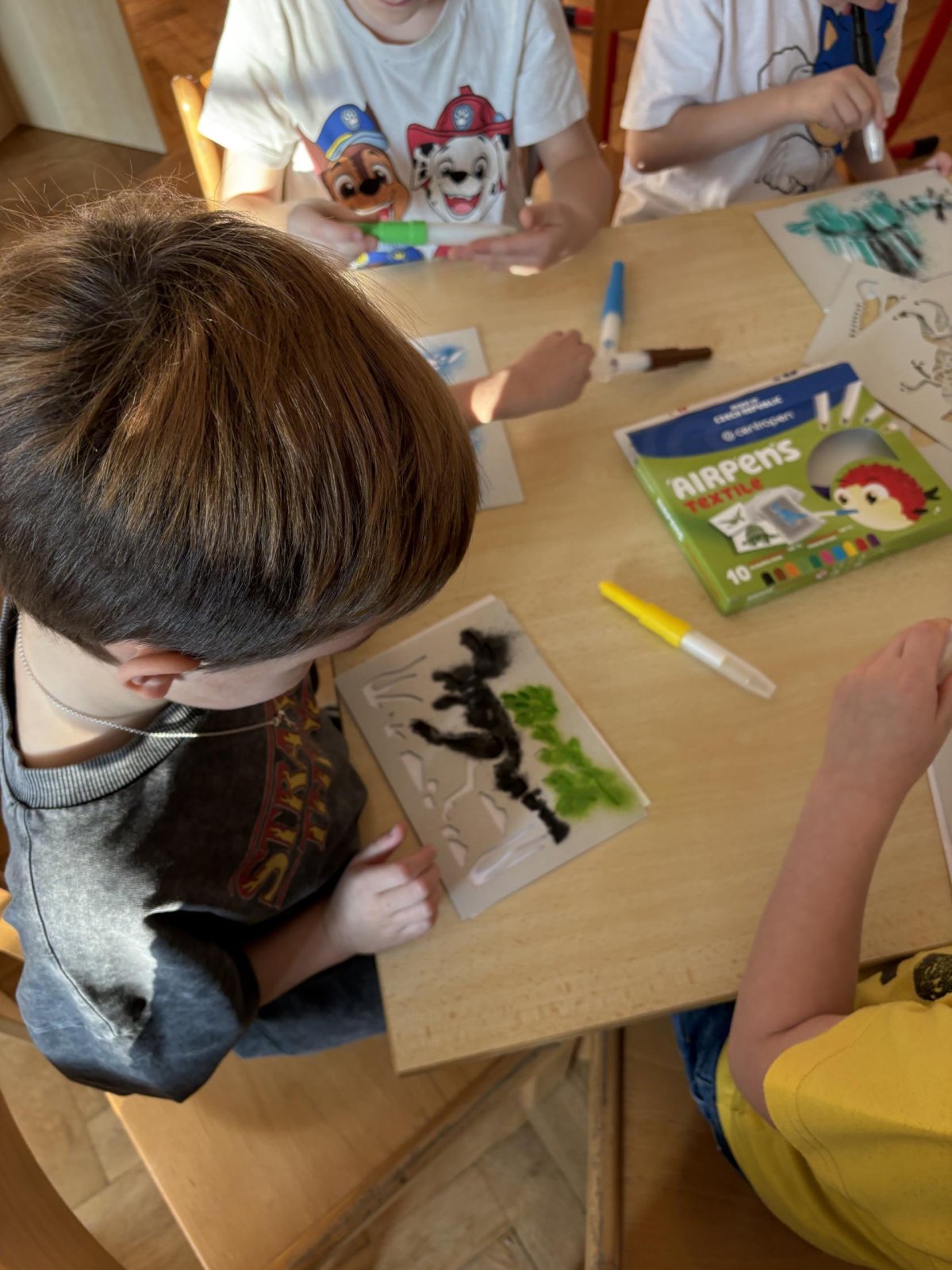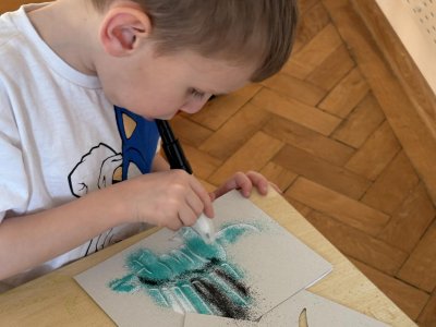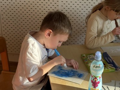 Děti se s chutí pustily do tvoření s foukacími fixy.