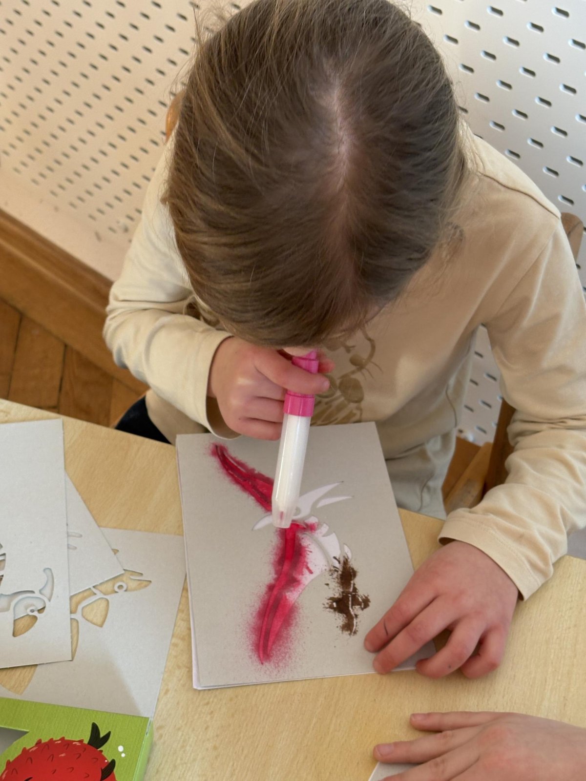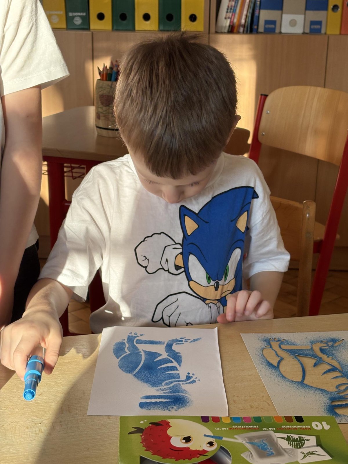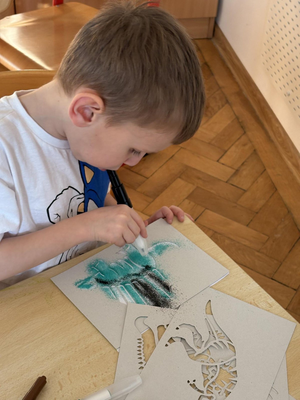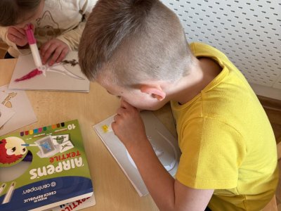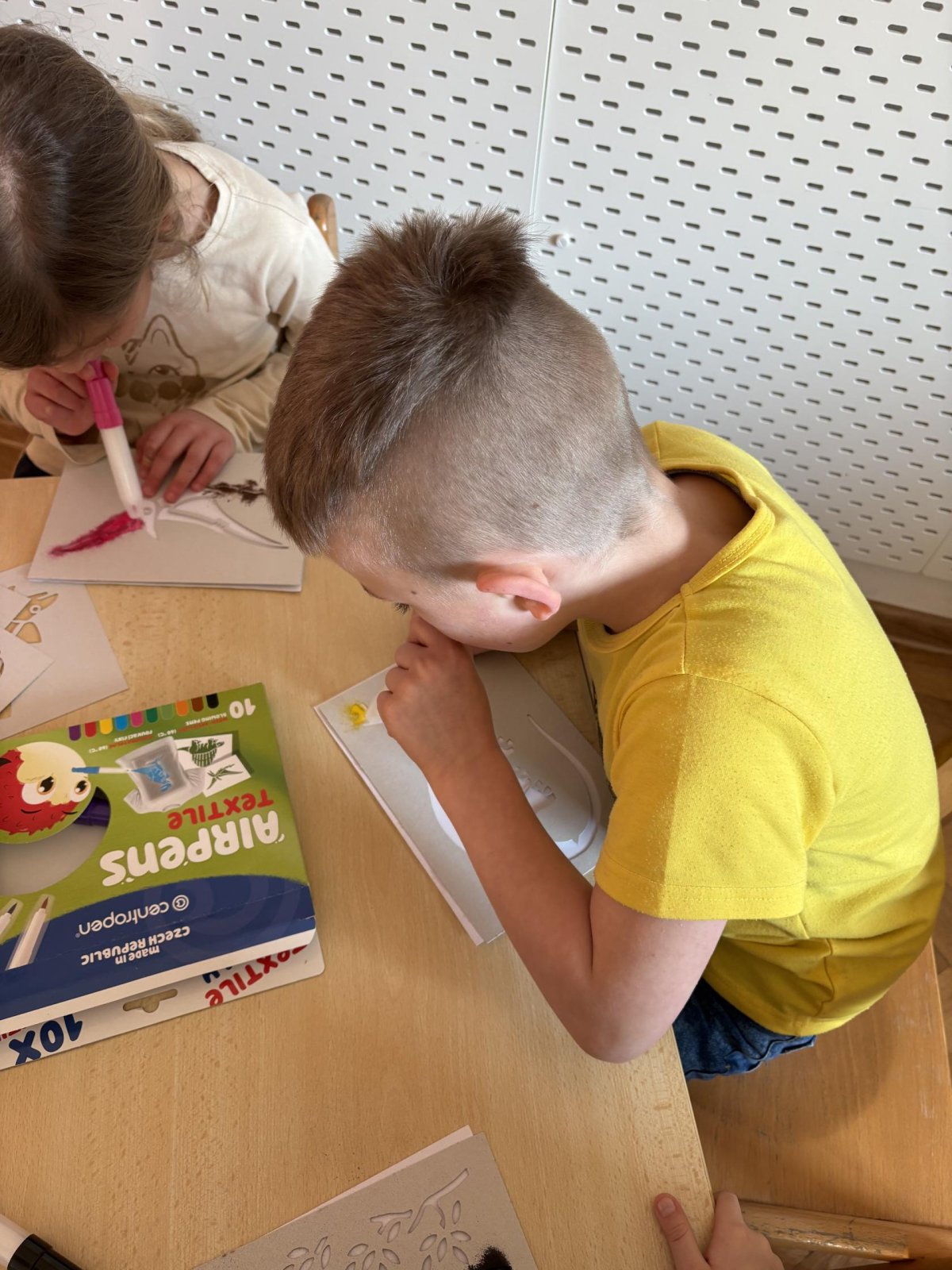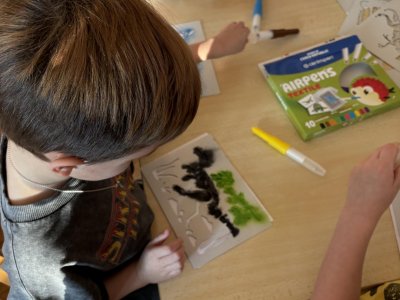 Děti se s chutí pustily do tvoření s foukacími fixy.