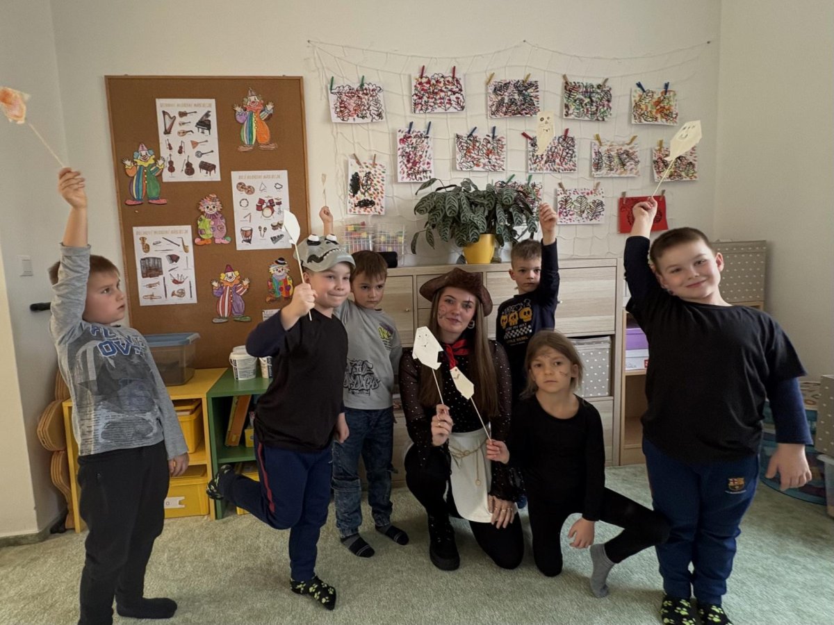 Děti se ponořily do kouzelného světa Halloweenu – tvořily strašidla, soutěžily v hrách a malovaly v našem strašidelném koutku. Tvořivost a fantazie nechyběla nikomu. Strašidelný den jsme si všichni náramně užili !