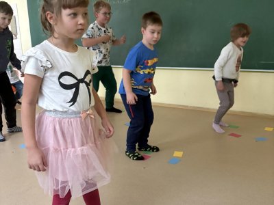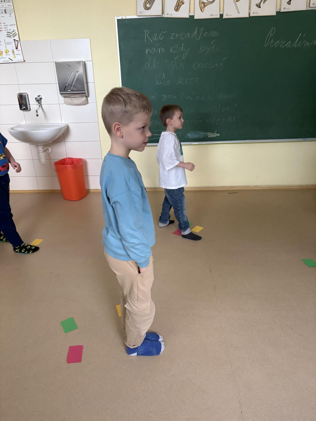 Dnešní odpoledne proběhlo ve znamení rytmu a pohybu. Děti dostaly barevné kartičky a podle videa se snažily co nejrychleji dotýkat správných barev. Cvičily tak své reflexy, postřeh i koordinaci rukou a nohou. Zadání byla svižná, ale děti je zvládaly s velkým nadšením. Na závěr jsme se společně protáhli a doplnili program krátkou pohybovou zábavou.