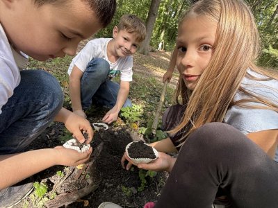 Podzim nám přináší krásné barvy a radost z tvoření v přírodě. Děti si užily "pečení" muffinků, vyráběly košíčky plné podzimních plodů.