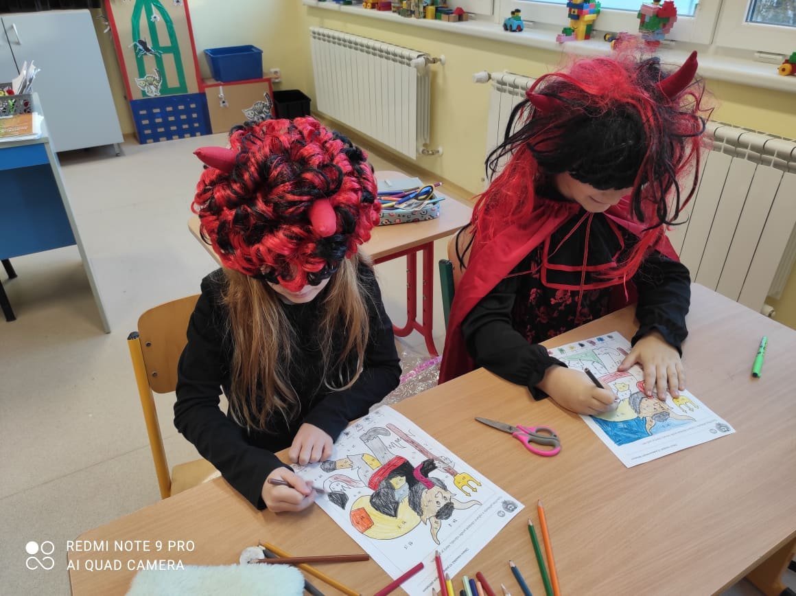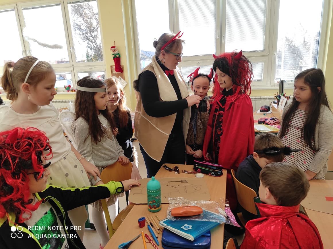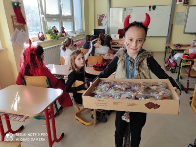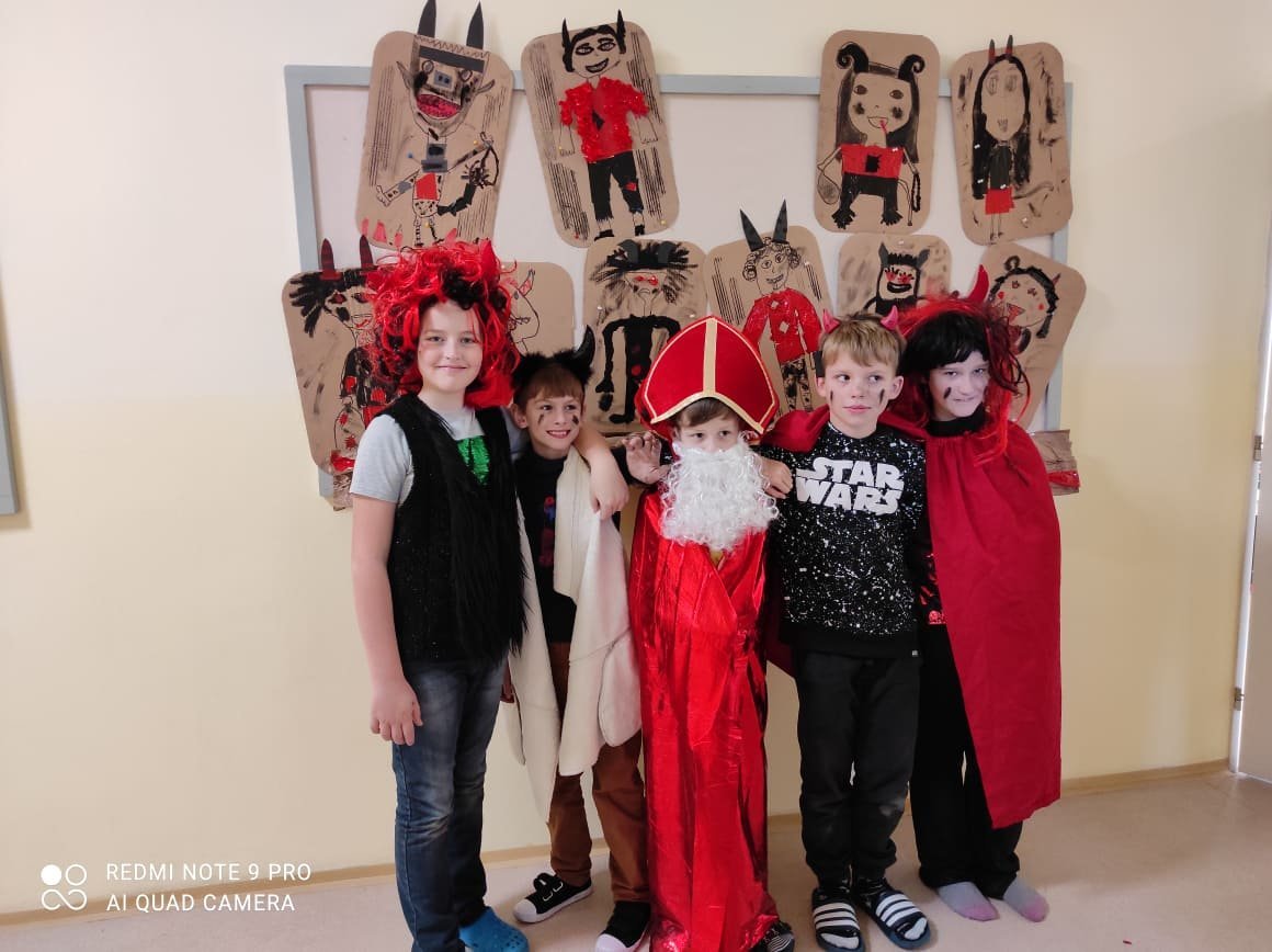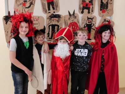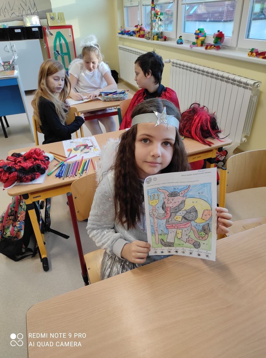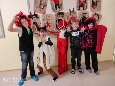 Dnešní den nám připomenul, že předvečer svátku svatého Mikuláše se nezadržitelně blíží. V lavicích seděl 1 Mikuláš, 4 andělé a 7 čertů. Učili jsme se zábavnou a hravou formou. Den jsme zahájili vyprávěním, kde se vlastně vzal Mikuláš a proč trojici doplňuje anděl a čert. Pak jsme vypracovali hravé mikulášské úkoly z matematiky a z českého jazyka. Nechyběla ani výtvarná dílna, kde jsme si každý vyrobili svého černo - červeného čertíka. Bára s maminkou připravila pro třídu zdravou svačinku - ovocný salát (děkujeme). Zvládli jsme i plnění úkolů na školní půdě, která byla dnes pekelná. Nakonec nám rozdala Terezka bonbóny, které dětem připravila jako překvapení. Chválím děti za velmi vydařený den.