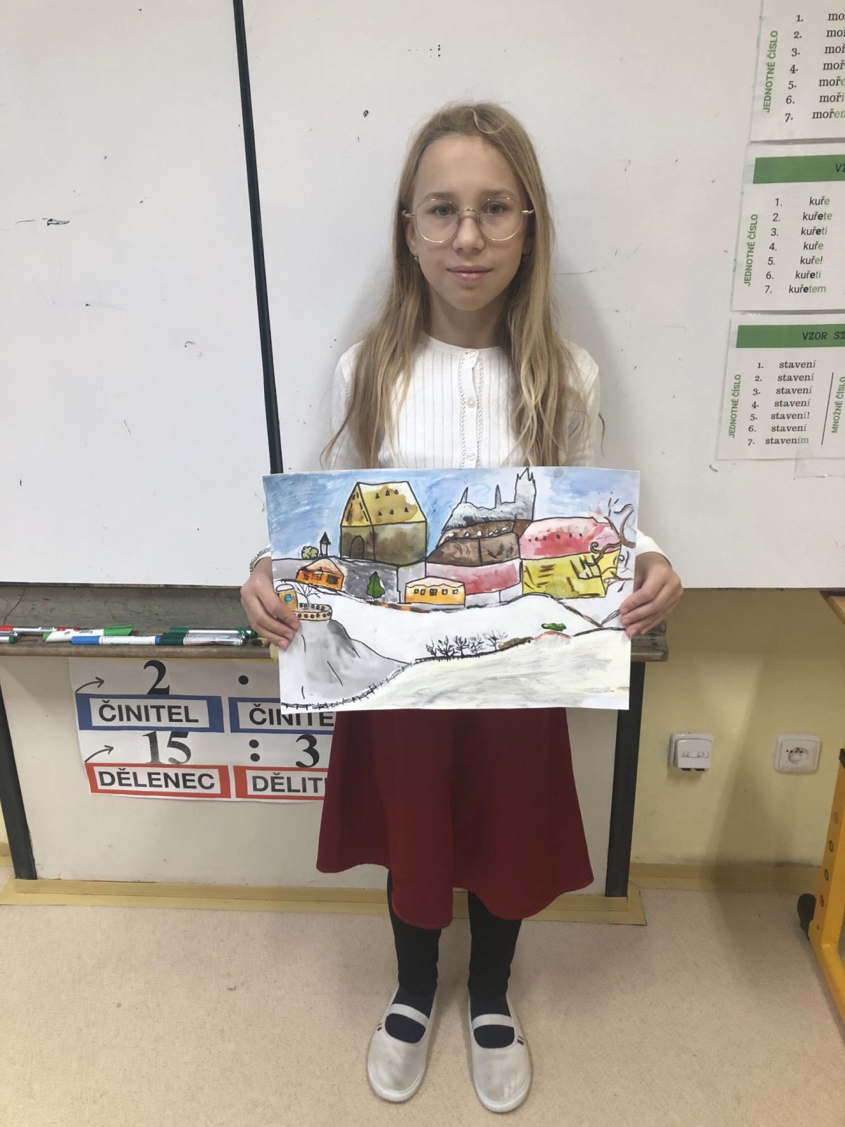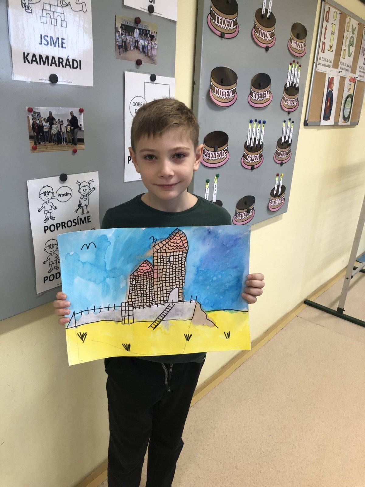 Rádi výtvarně tvoříme na daná témata. Ztvárnit podobu našeho města jsme ve výuce výtvarné výchovy zvládli na jedničku a některé velice podařené výtvory byly odeslány do soutěže, kterou organizuje město Znojmo. To slaví příští rok už 800 let a my zaznamenali současnou podobu našeho města s bohatou minulostí.