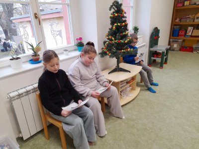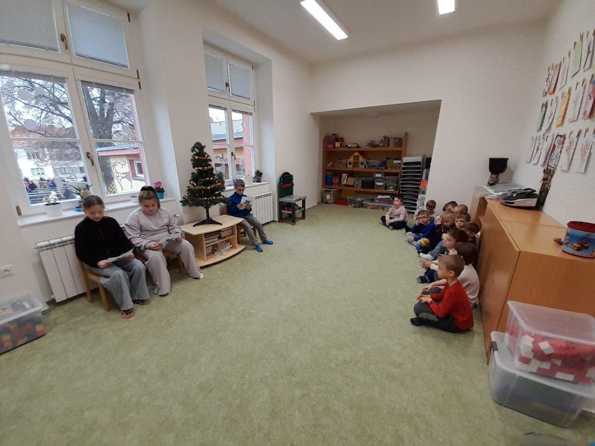 Texty, které paní učitelka vybere a tematicky zapadají do planů výuky v "přípravkách", si naši čtvrťáci nejdříve nacvičí a potom se společně během zvolené přestávky vydáváme na návštěvu mezi děti, kterými jsme už vždy netrpělivě očekáváni. Prosincové čtení bylo samozřejmě adventně laděné. Prvních příběh vyprávěl o malých rarášcích, kteří chodili ujídat napečené cukroví. A jak zvědavě děti poslouchaly, to jistě poznáte i z přiložených fotografií.