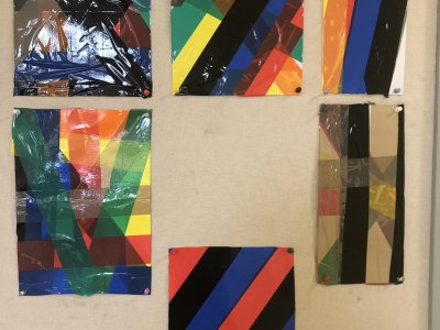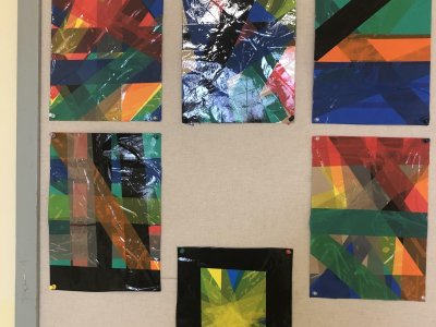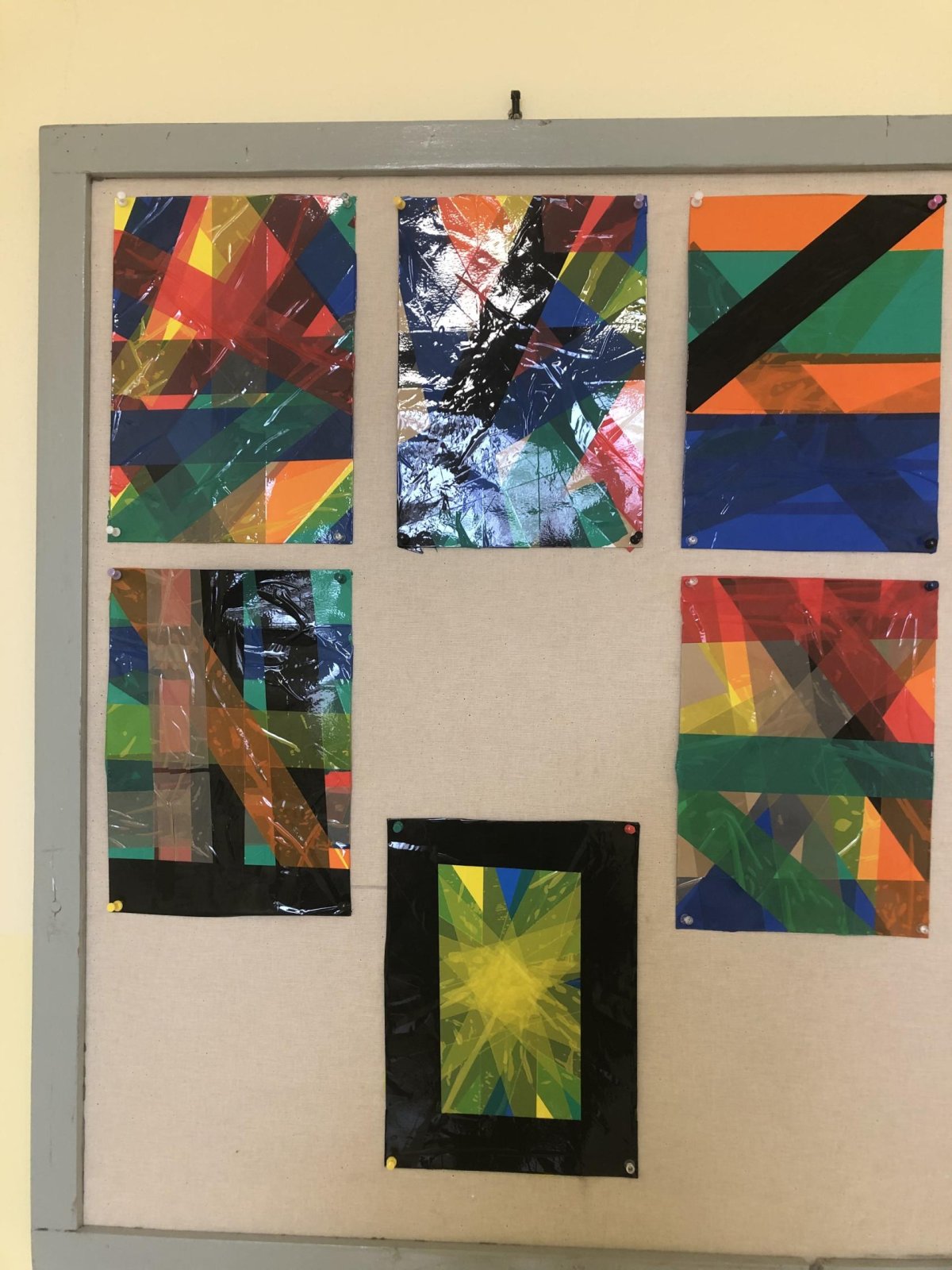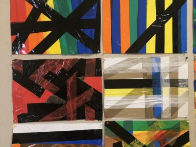 Žáci 5. B si tentokrát ve výuce výtvarné výchovy pohráli s barvami, přesněji řečeno s izolepou. Vytvořili tak různé abstrakce, pod kterými si každý z nás může představit cokoliv.