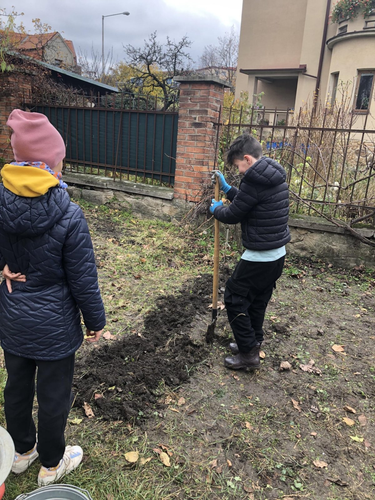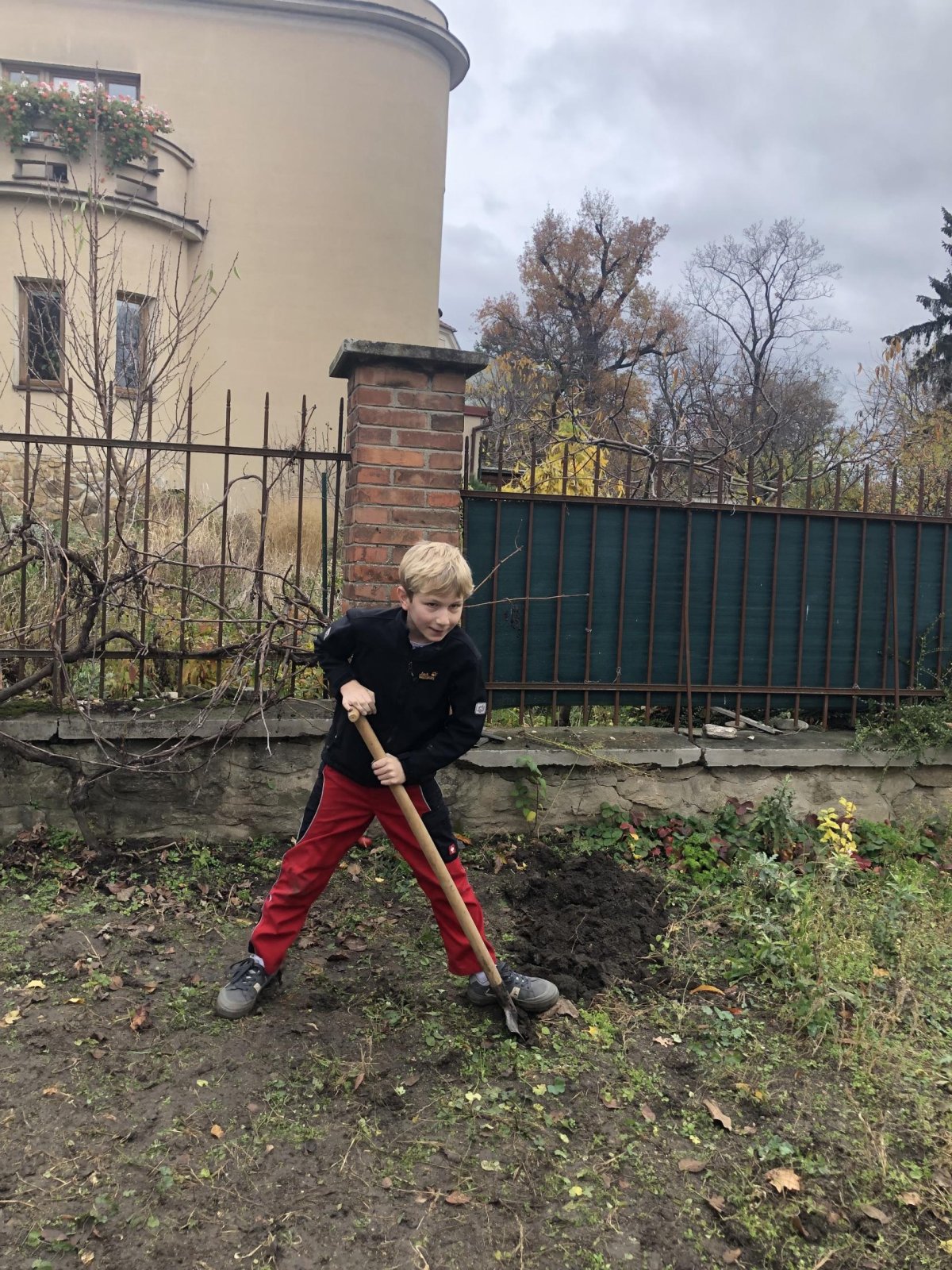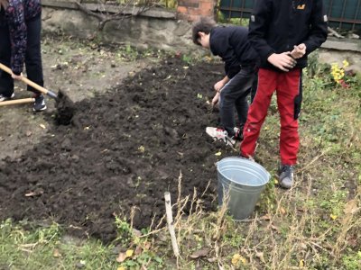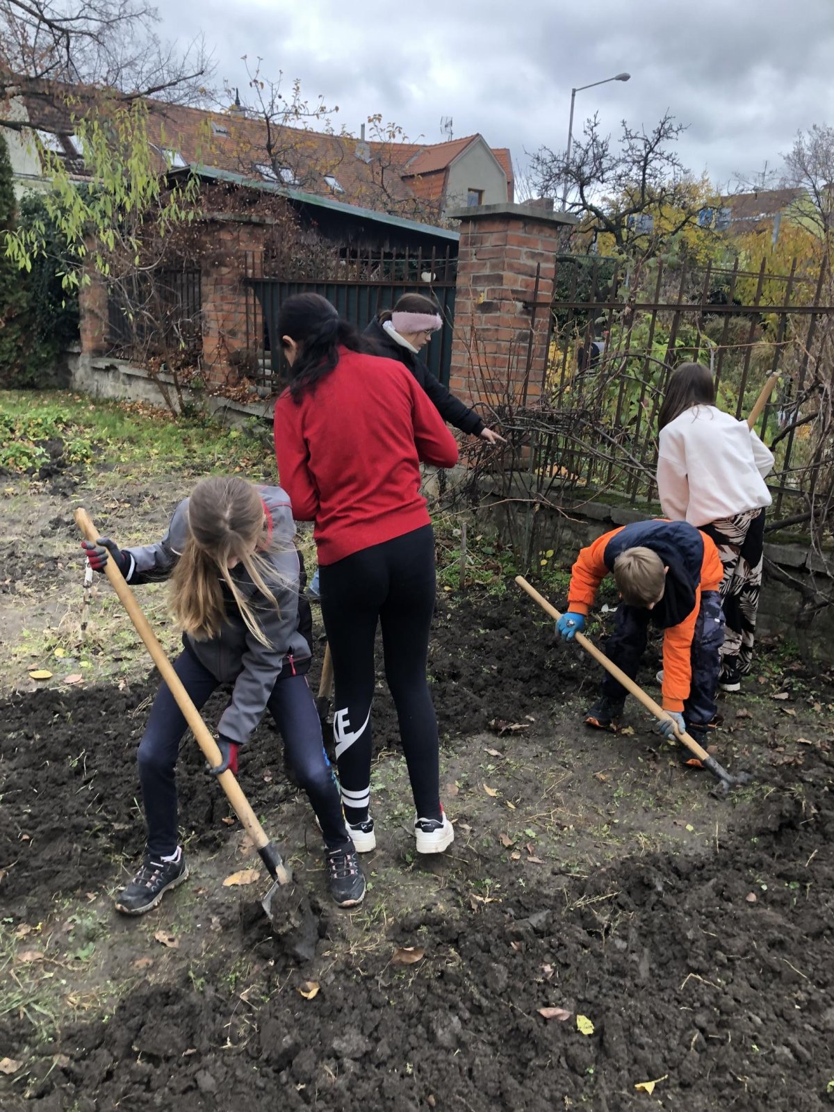 Napršelo, takže ideální čas na zrytí naších záhonků na školním pozemku. Půda byla vlhká a nám se dařilo. Nejdříve jsme odstranili plevel a zbytky rostlin a pak přišel na řadu rýč a troška dřiny. Povedlo se a my měli příjemný pocit z dobře vykonané práce.