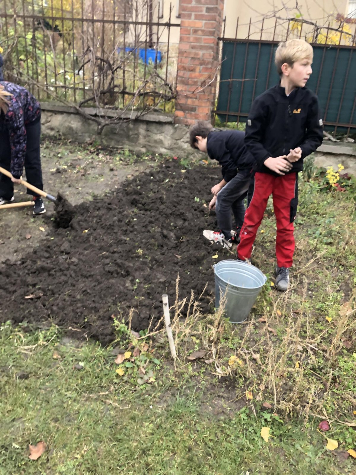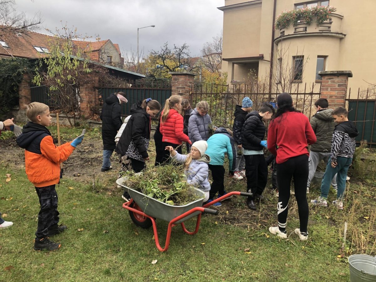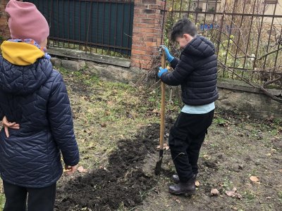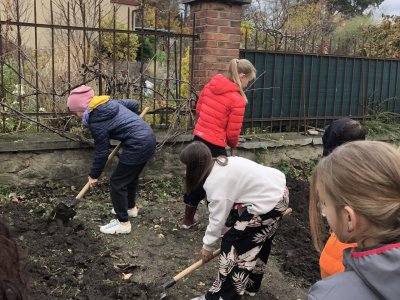 Napršelo, takže ideální čas na zrytí naších záhonků na školním pozemku. Půda byla vlhká a nám se dařilo. Nejdříve jsme odstranili plevel a zbytky rostlin a pak přišel na řadu rýč a troška dřiny. Povedlo se a my měli příjemný pocit z dobře vykonané práce.