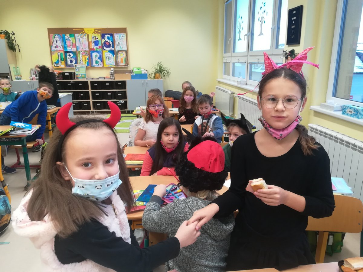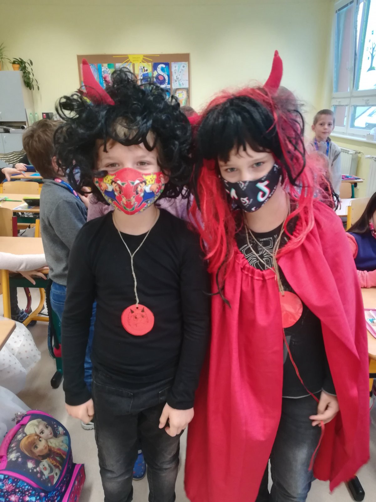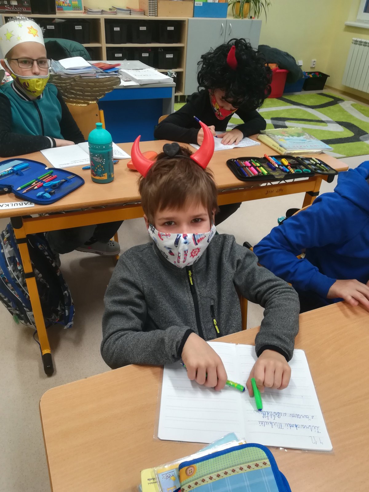 Den byl od rána jiný. Žáci v maskách (nejvíc čertů), zábavné úkoly do ČJ a M, hry a soutěže ve třídě, peklo na půdě a víkend před námi :)