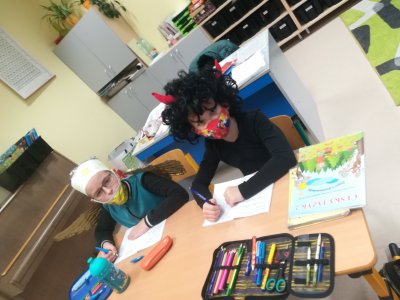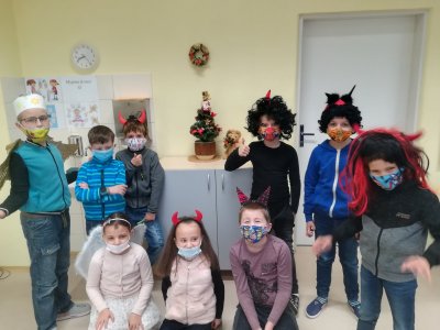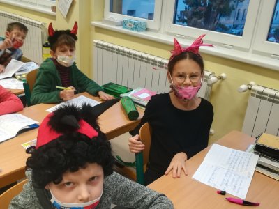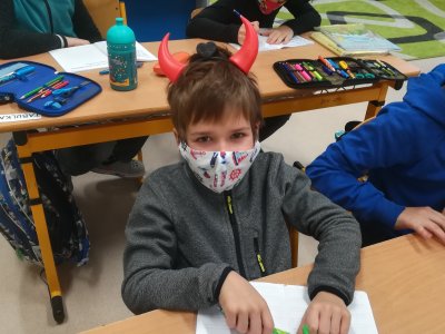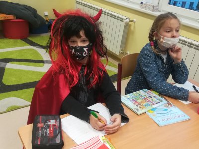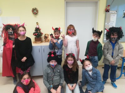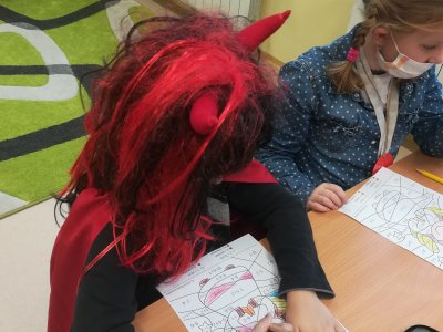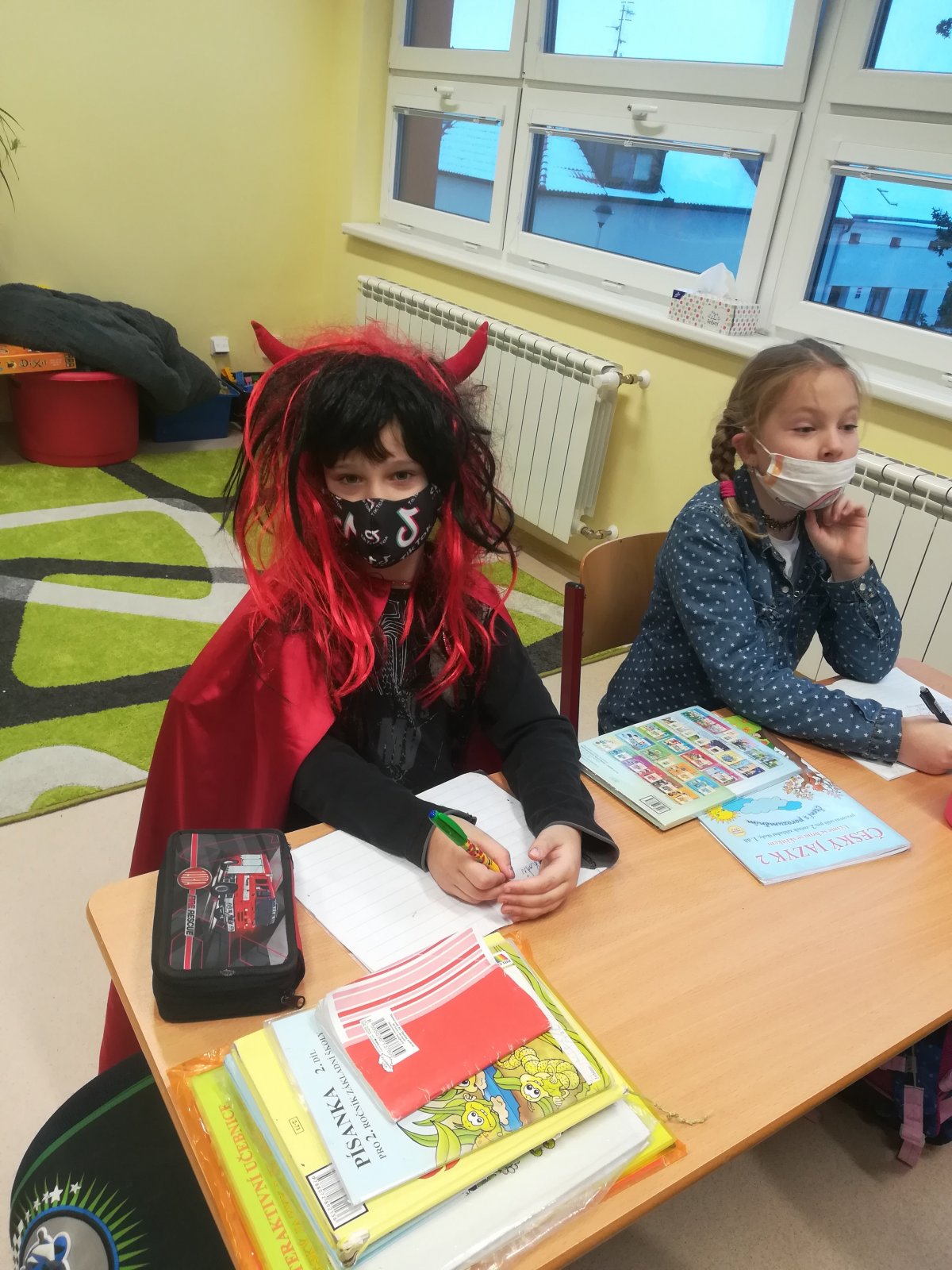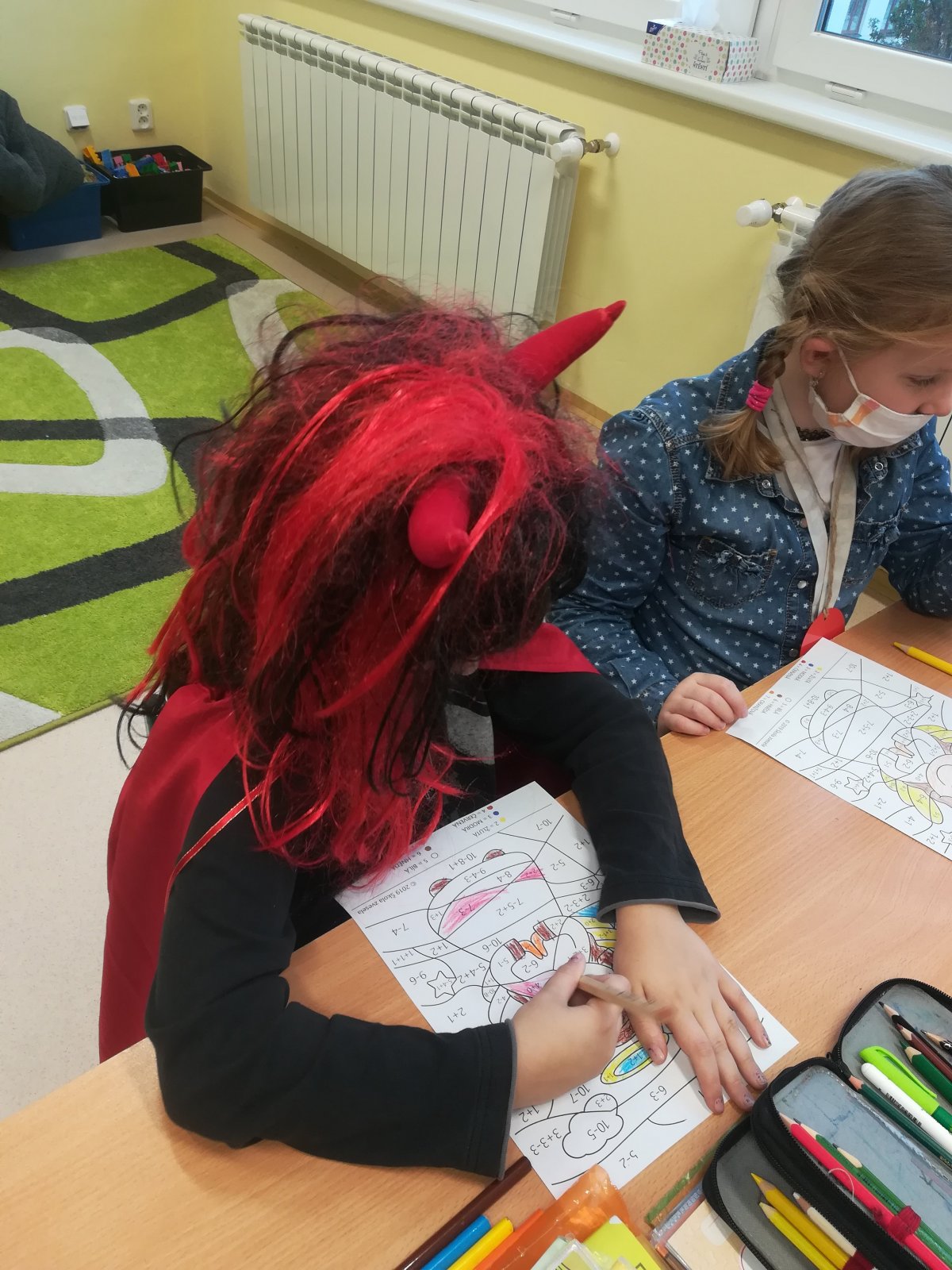 Den byl od rána jiný. Žáci v maskách (nejvíc čertů), zábavné úkoly do ČJ a M, hry a soutěže ve třídě, peklo na půdě a víkend před námi :)