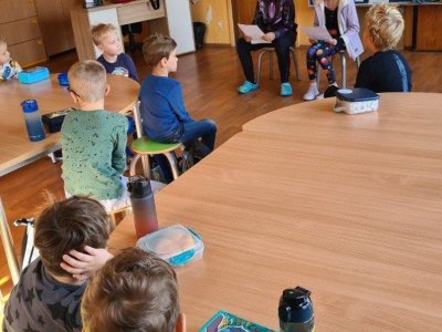 Do naší třídy zavítali žáci z 5.B, kdy jsme navázali opět na spolupráci. Žáci se střídají ve čtení a pro všechny strany to byla premiéra. Čtení zvládli krásně a my jsme poslouchali s nadšením. Bylo to pro děti něco nového, hlavně velký vzor, jak to jednou zvládnou také. Děkujeme a těšíme se na čtenářské chvilky s "páťáky".
