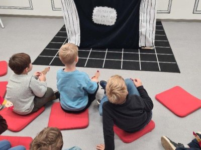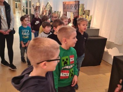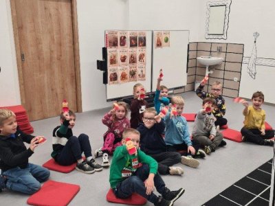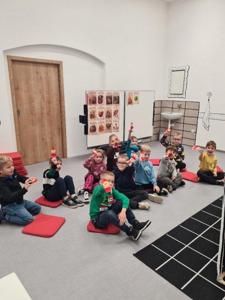 Naše první návštěva JmM na Alšovce byla pohádková. Vydali jsme se hledat kašpárka po prostorách muzea, velkou nápovědou byl jeho portrét. Ale nebylo to jednoduché, jelikož nás po cestě čekalo spousta loutek, marionet, pohádkových postav a i hodně podobných kašpárků, ale jen ten jeden byl pravý. Bystrým očím dětí kašpárek neunikl, za odměnu si kašpárka vyrobily a vyzkoušely si zahrát divadélko.