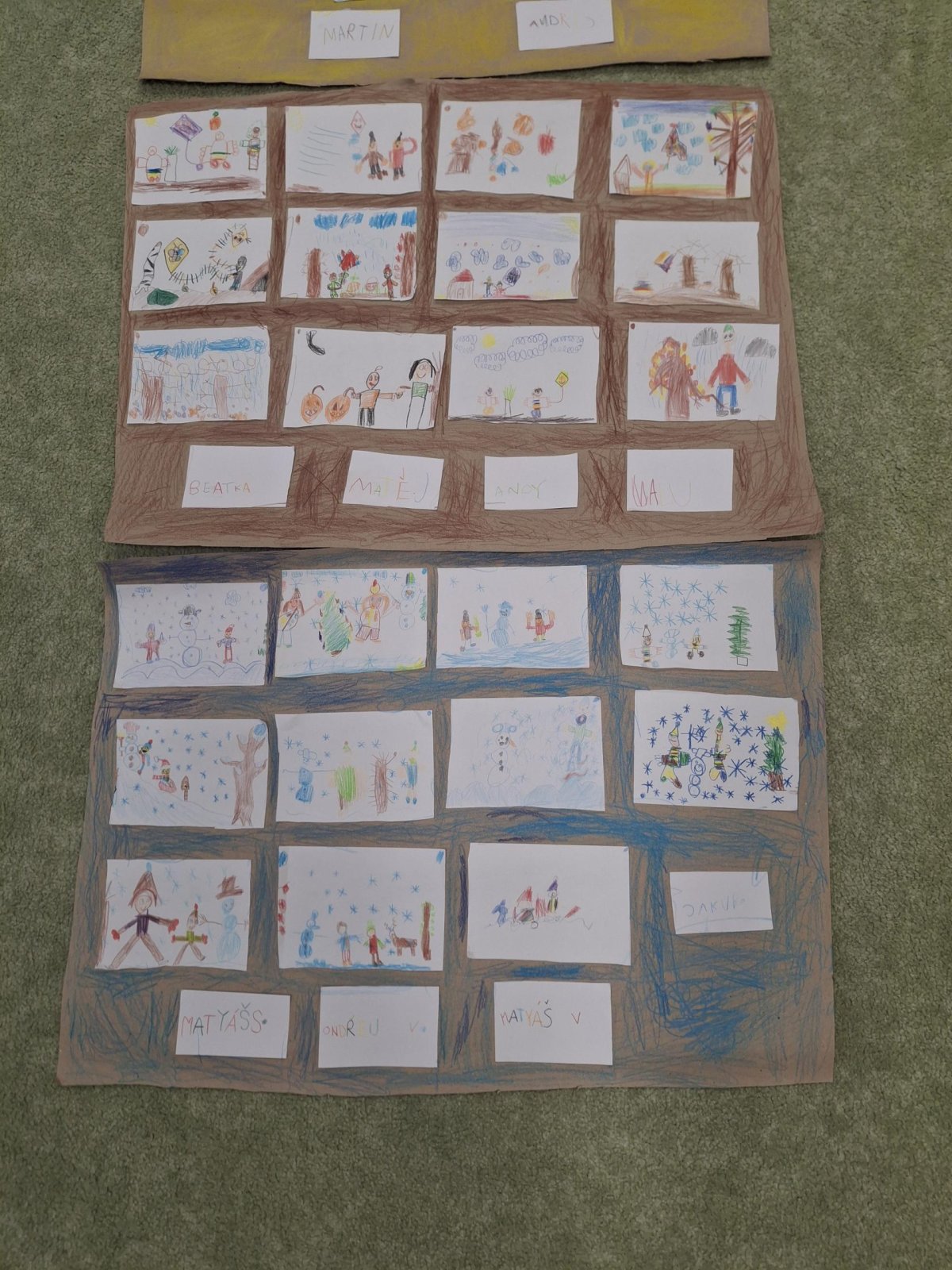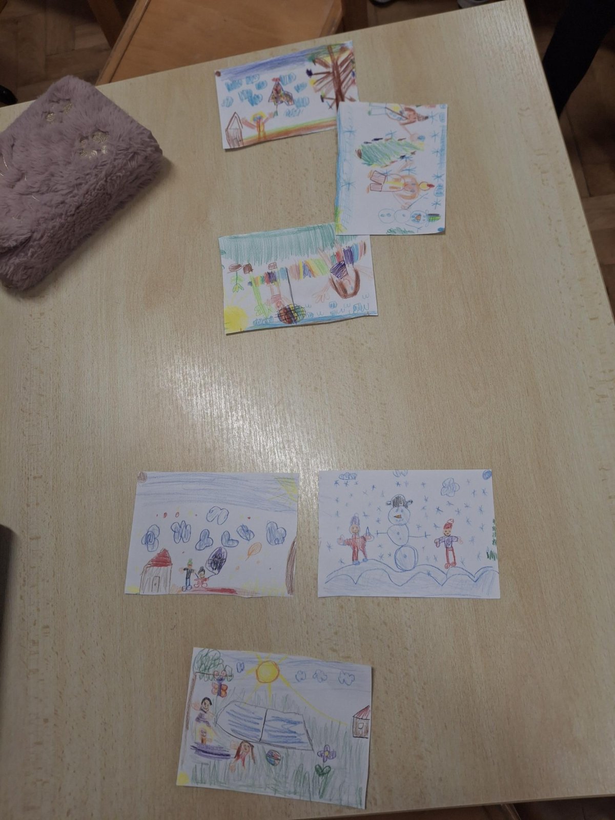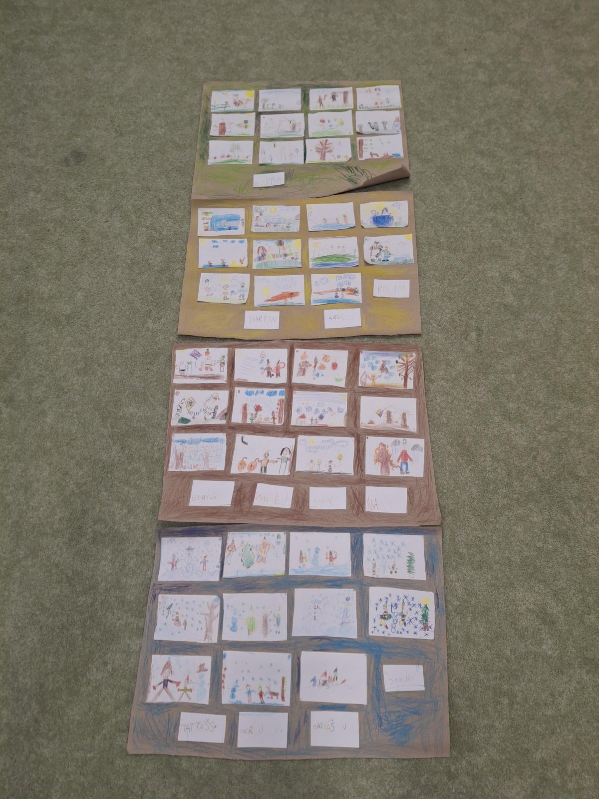 Text známé dětské písně - i my jsme se učili poznávat nejen dny v týdnu, ale i roční období. Seznamovali jsme se s charakteristickými znaky každého období - oblečení, počasí, typické sporty a činnosti, svátky a zvyky, změny v přírodě, přizpůsobení zvířat a rostlin. Snažili jsme se i zapamatovat si datum svého narození a zařadit ho do našeho kruhu ročních období. Výsledkem bylo vytvoření "mapy" ročních období nejen na tabuli, ale i pomocí charakteristických obrázků ročních období dětmi. Na nich jsme se učili popisovat věci a činnosti celou větou, nejlépe už rozvitou.