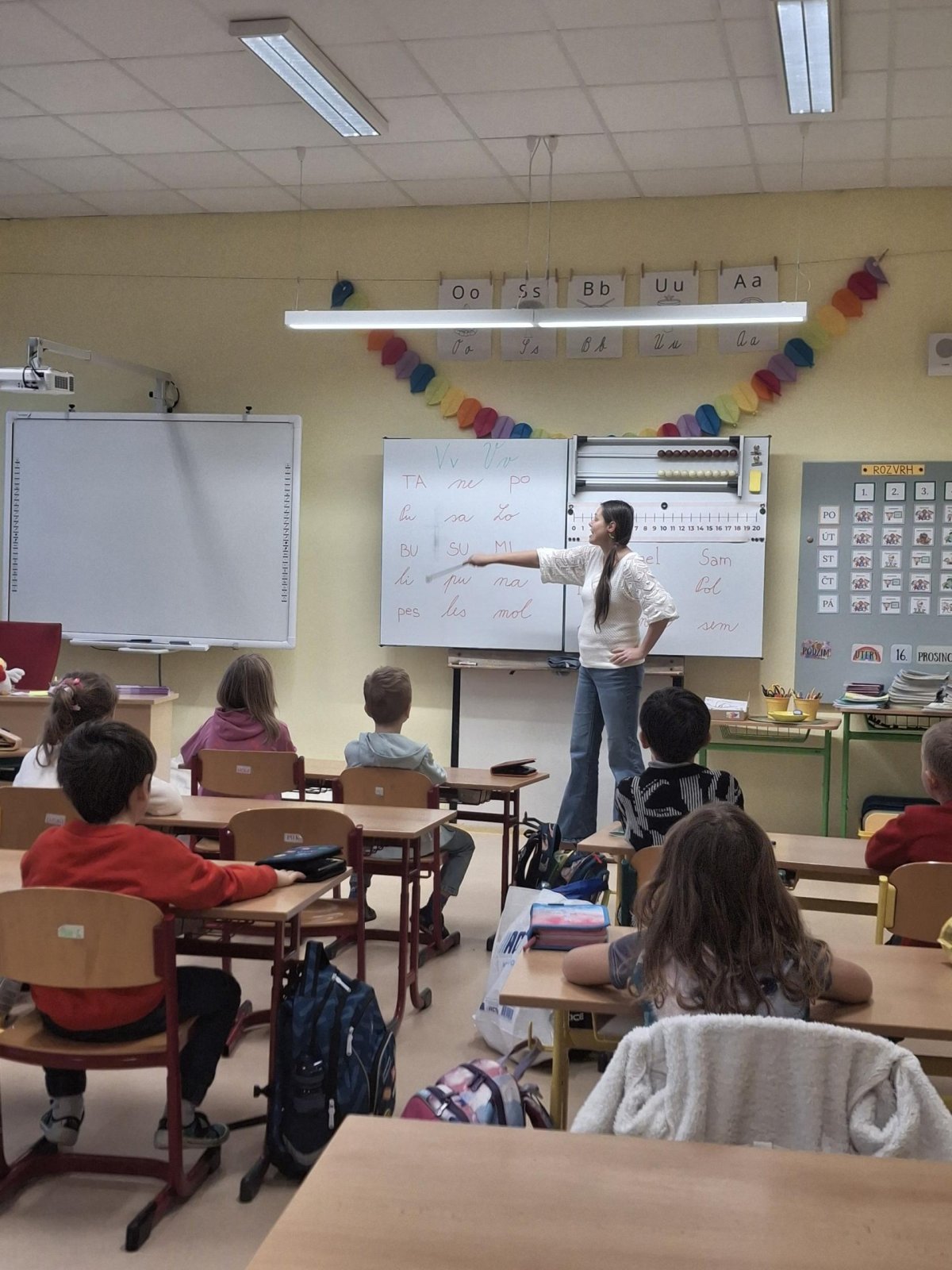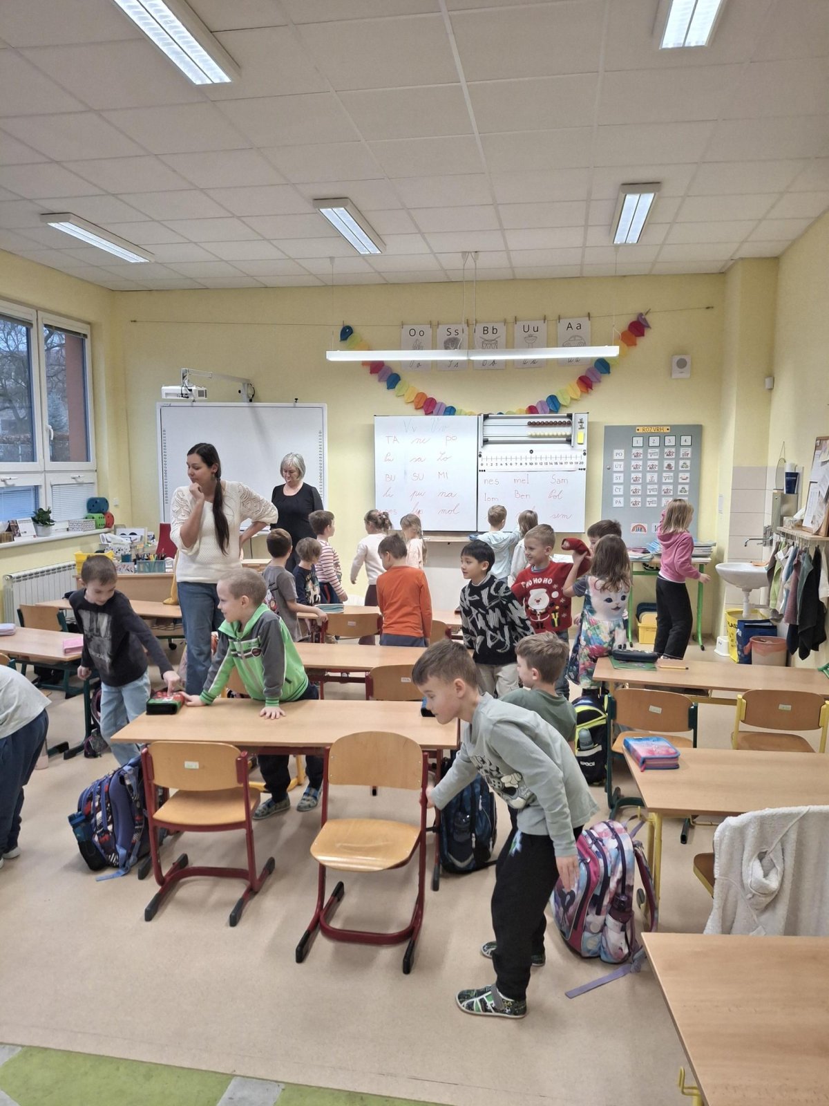 Prvňáčci, kteří prošli "přípravkou" se rádi pochlubí, co už všechno umí, a my se zase rádi podíváme, jak to v 1.třídě chodí. Společně jsme si vyzkoušeli písmenka, grafomotoriku do písku, počítat do 20 i zazpívat písničku.