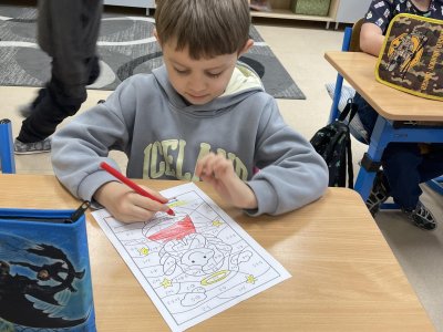 Na závěr týdne nás čekal projektový den s čerty, během kterého jsme si povídali o tradicích, tvořili a plnili čertovské úkoly. K Mikuláši jsme se pečlivě připravili – naučili jsme se básničku, kterou jsme si společně procvičili a krásně odrecitovali.
