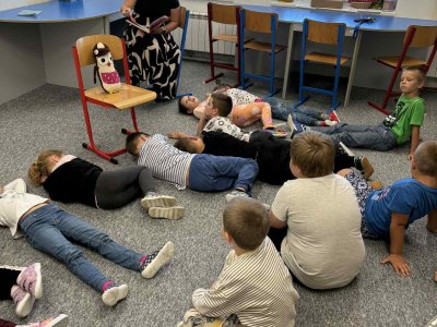 I do naší třídy se přiletěl podívat Sovík, který s sebou přivezl pohádku o Palečkovi. Děti si pohádku poslechly ve školní knihovně, poté se pustily do převyprávění, povídání i her, které se k příběhu vztahovaly.