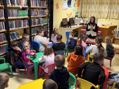 S prvňáčky jsme se vydali na naši první návštěvu městské knihovny. Paní knihovnice nás mile přivítala a provedla nás knihovnou. Děti se dozvěděly, jak se knihy řadí v regálech, co znamenají štítky na hřbetech knih a jak si mohou knihu správně půjčit.