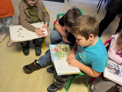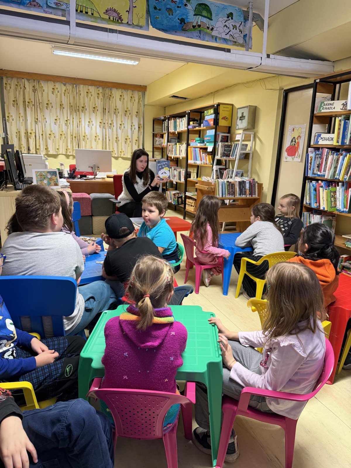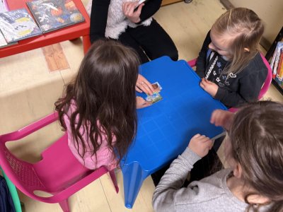 Společně jsme si také povídali o tom, jak se ke knihám chovat, aby vydržely dlouho hezké i pro další čtenáře. Děti si vyzkoušely práci s knihou – prohlížely si dětské knížky, hledaly obrázky, poznávaly autory a názvy knih. Nechybělo ani společné čtení krátkého příběhu, o kterém jsme si potom povídali.